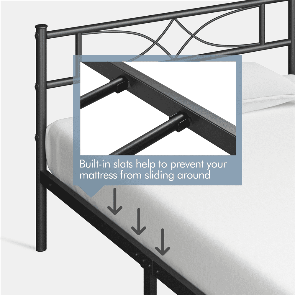 $137.59Original price was: $137.59.$85.99Current price is: $85.99.Constructed of a solid and durable metal frame, this bed frame features multiple strong support legs that provide optimal stability for any type of latex, memory foam or spring mattress without a clumpy box spring. Details like the powder-coated finish and non-slip foot caps all contribute to your safety and comfort. Plus, the platform bed frame creates sufficient under-the-bed storage space for your luggage, shoes, bags and other odds & ends, keeping your bedroom tidy and clutter-free.