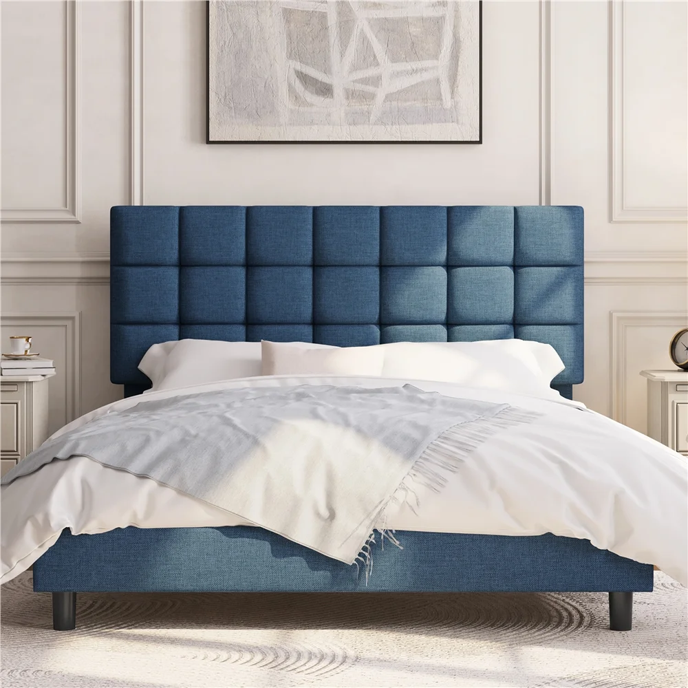 Yaheetech Modern Upholstered Platform Bed with Adjustable Tufted Headboard , Queen Size, Navy Blue