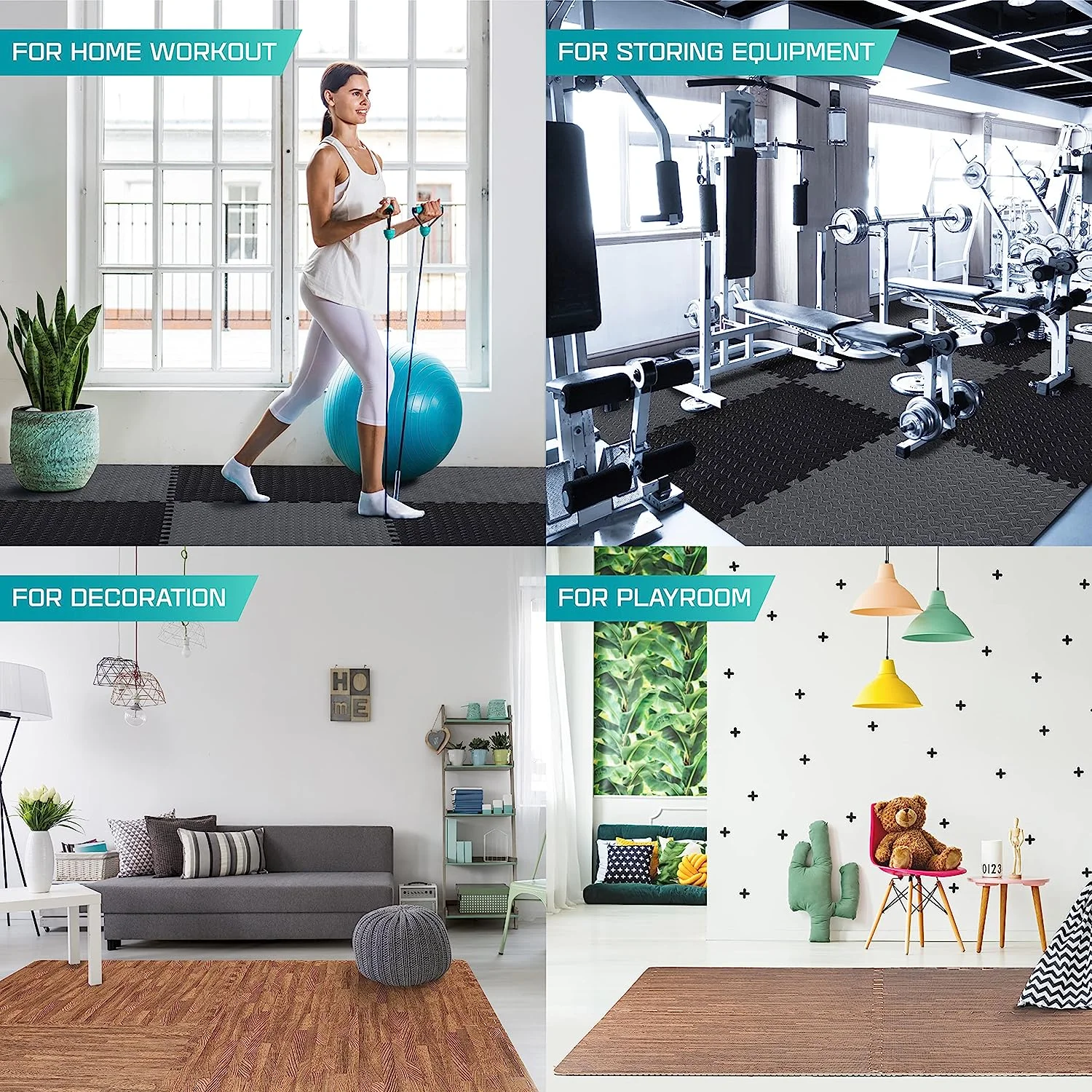 Yes4All 24, 48, 120 SQ. FT Puzzle/Interlocking Exercise Mat Tiles for Home Gym, Exercise EVA Foam Floor Padding with Border for Workout Equipment