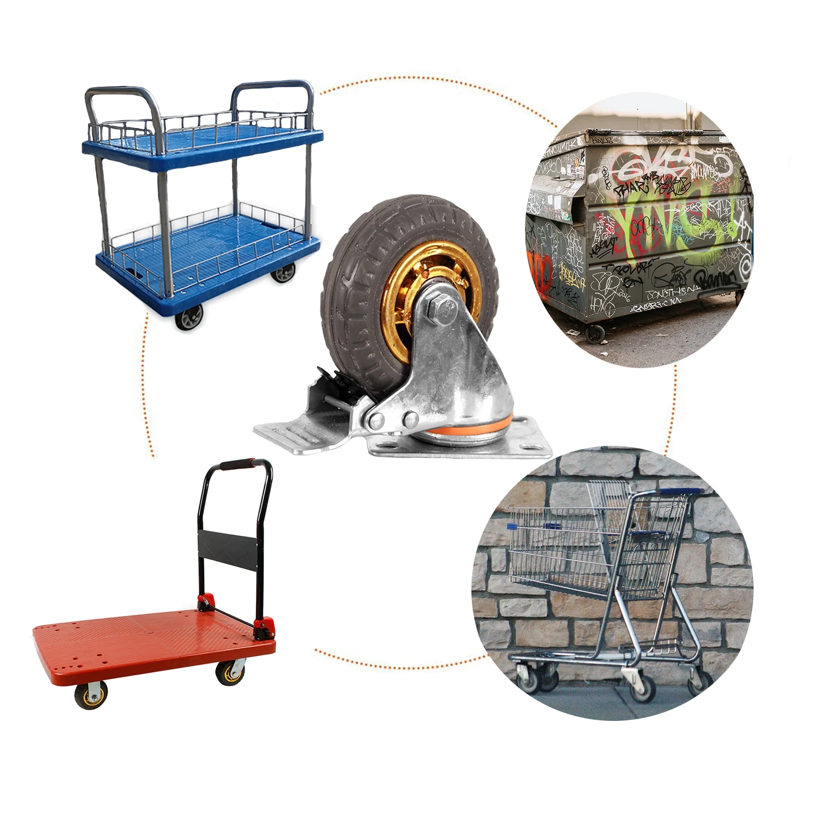 $60.19Ycvsad 5 inch Caster Wheels heavy duty casters set of 4,Rubber Swivel Caster mute anti-skid with brake 360 Degree Double Ball Bearing Castors single wheel load 165 lbs, four wheels load 330lbs. 4 pieces of rubber swivel casters:2 fixed casters, 2 swivel casters with brakes.Max Load capacity:330lbs.Flexible steering/load-bearing compression/light movement