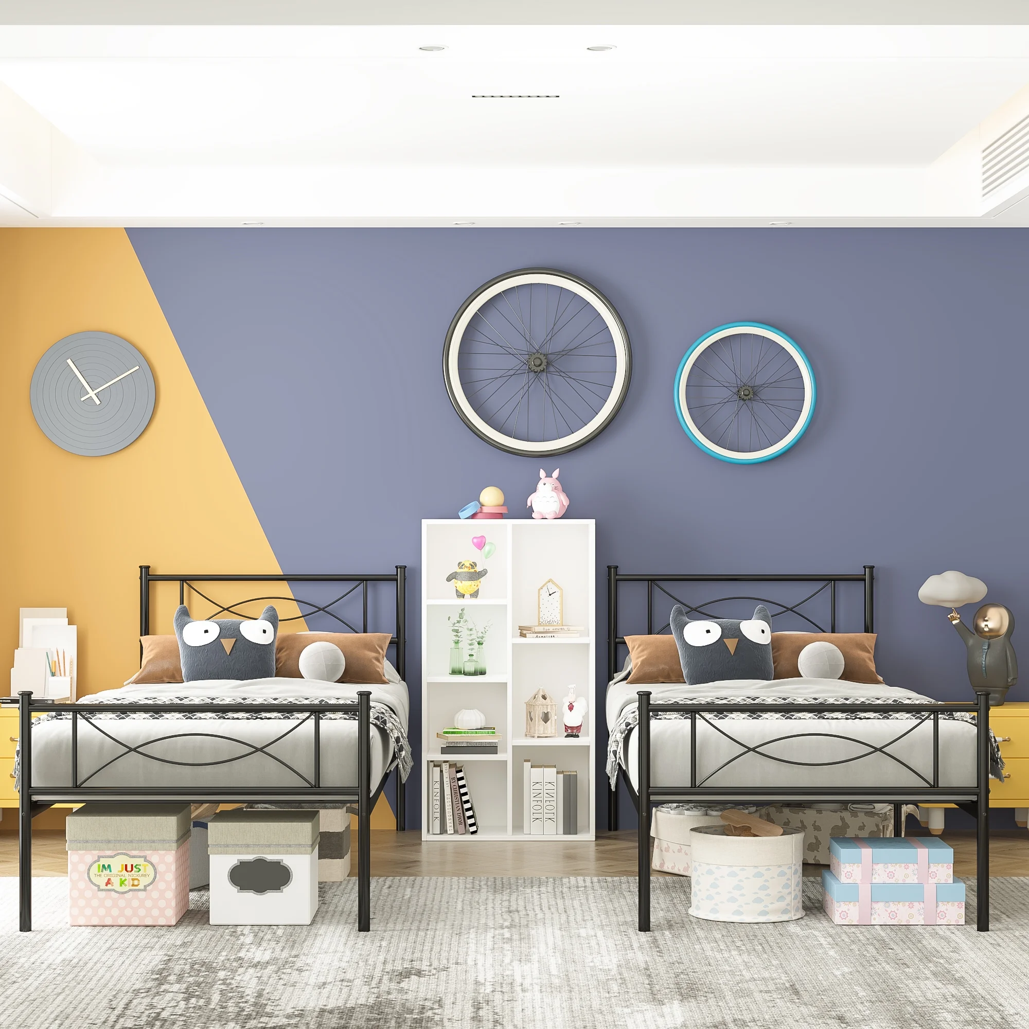 Yoneston 12.7″ High Metal Platform Bed Frame with Two Bowknot Headboards Easy Assembly Twin Size Single Bed Frame for Kids