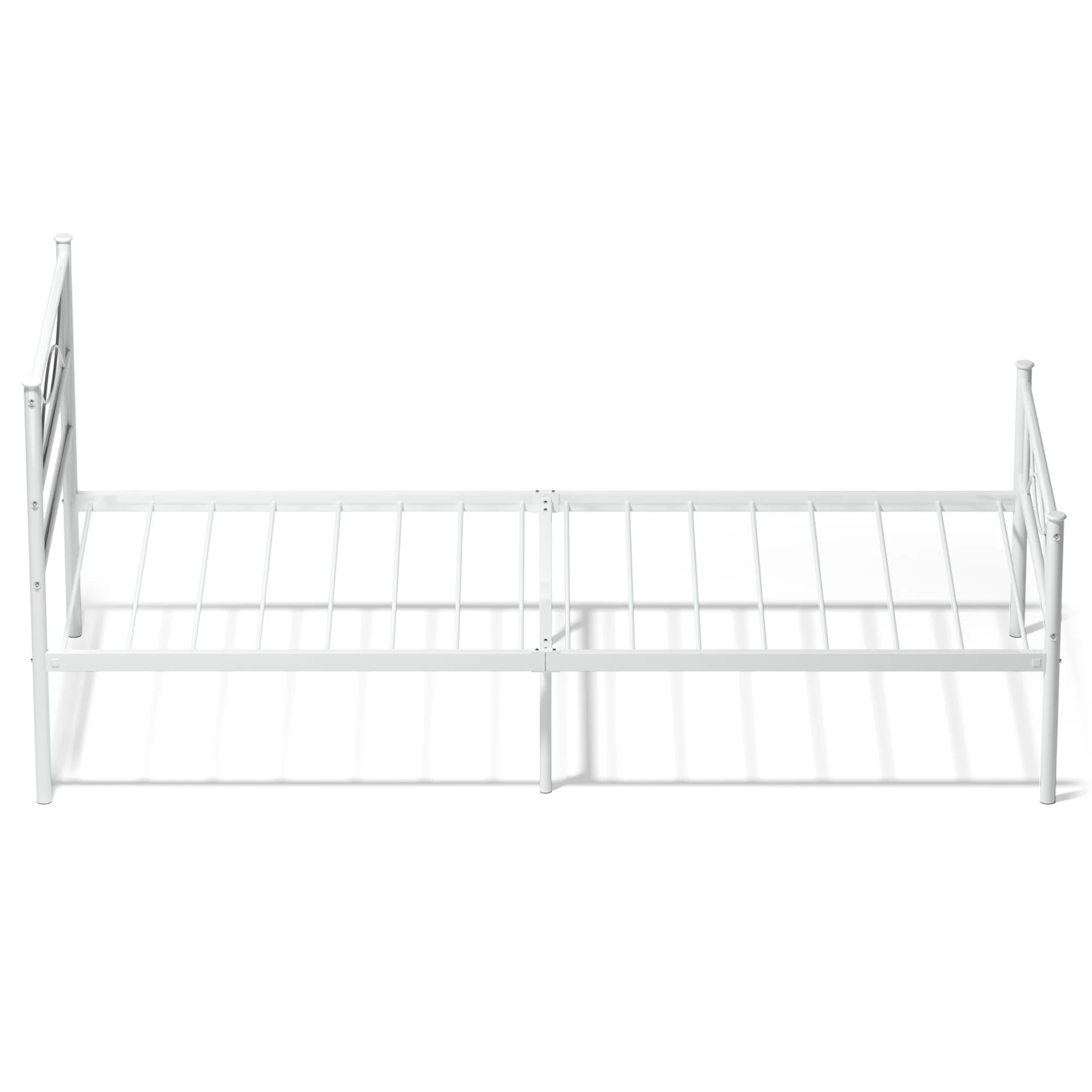Yoneston 12.7” High Metal Platform Bed Frame with Two Bowknot Headboards Easy Assembly Twin Size, White