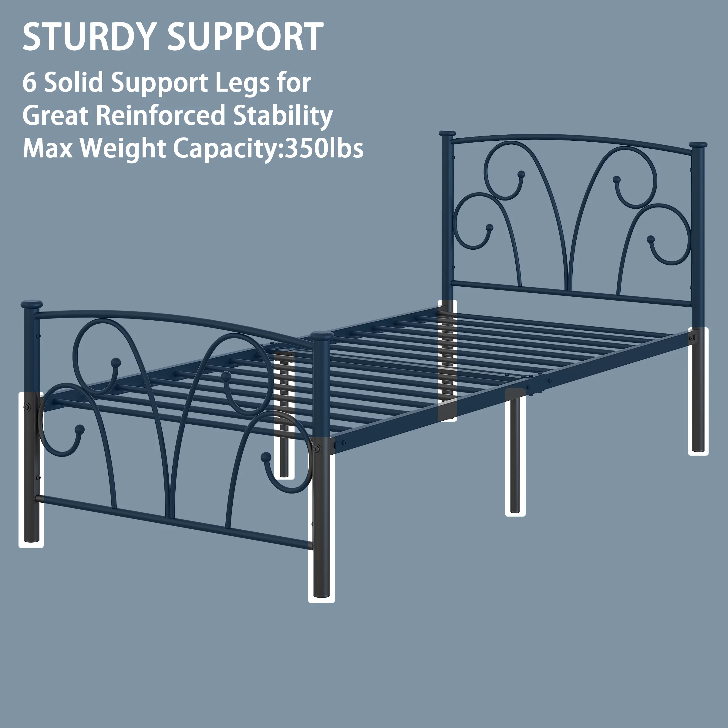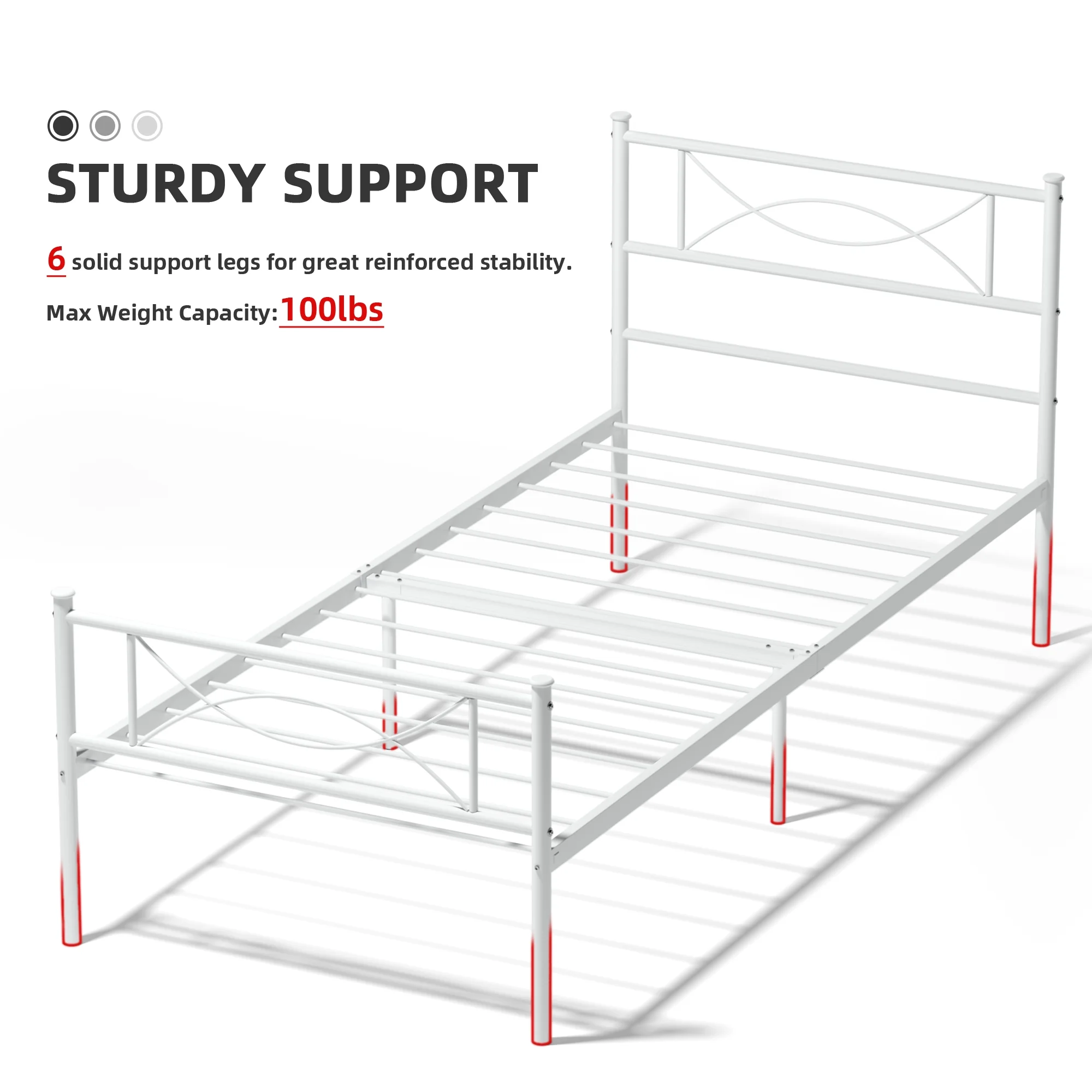 $63.63Elephance Easy Set-up Premium Metal Bed Frame Platform Mattress Foundation with Headboard, Under-bed Storage, Twin Sizes. This metal bed frame foundation is made from durable, premium quality steel to provide sturdy support for your mattress. It is a unique, easy-to-assemble sturdily construction system that will provide you with reliable and convenient bedding support. The 12.5” height allows the mattress to breathe, as well as saving space by storing underneath.