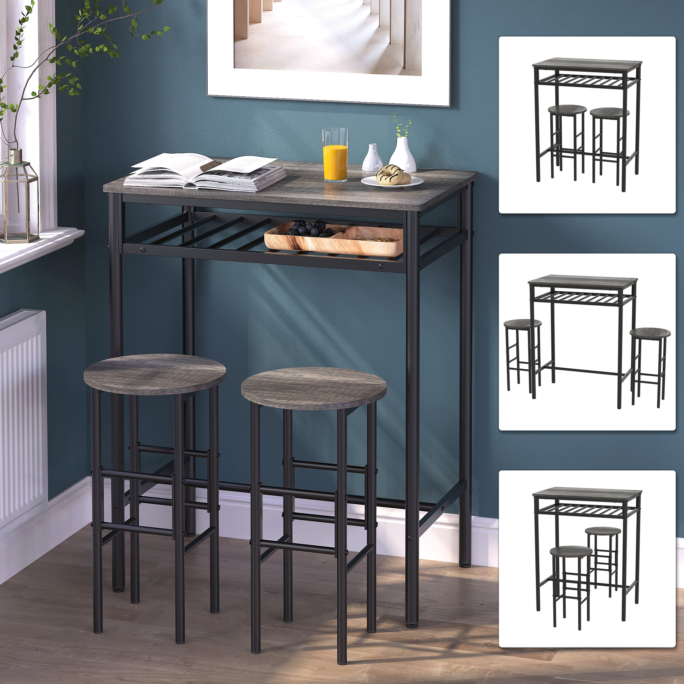 $107.50Are you looking for a combine modern, retro and sturdy bar table set for your family? If so, try our new upgraded 3-piece pub dining table set. Our bar table with stools set is pretty wood grain and works great for small space. It was made of MDF and sturdy metal frame with upgraded vertical structure, modern and durable. Create your own pub or bistro area where family and friends will feel welcomed to have cocktails or dine. We designed two colors for you: the vintage industrial oak and modern white with gold frame. They are easy to match all kinds of furniture decor. We built a spacious open storage rack under the table; It is convenient for you to store your wine, fruit, food, books and other things. Perfect for kitchen, breakfast nooks, restaurants, lounges or pubs. Enjoy oneself happy hour or two person wine timing by our space saving high top bistro table set.