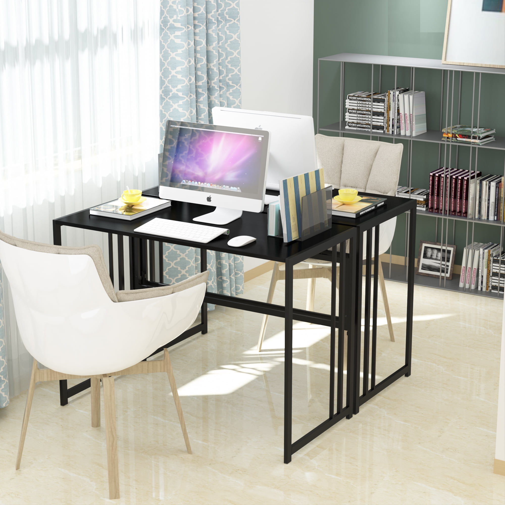 $54.59This folding desk is perfect easy-assembly furniture to fit any home or decoration. It’s a simple modern style with a one-second folding design. Easy Carry to your car or outdoor or indoor. Our folding corner desk can be used in multiple rooms and multiple ways: in your bedroom, living room, children’s room, office, and warehouse with the folding design especially recommendation for the limited space. You will have this multifunctional desk as your computer desk, study desk, gaming desk, writing desk, entryway table, console table, side table, and so on. A small desk but it can combine your Living & Office Space.