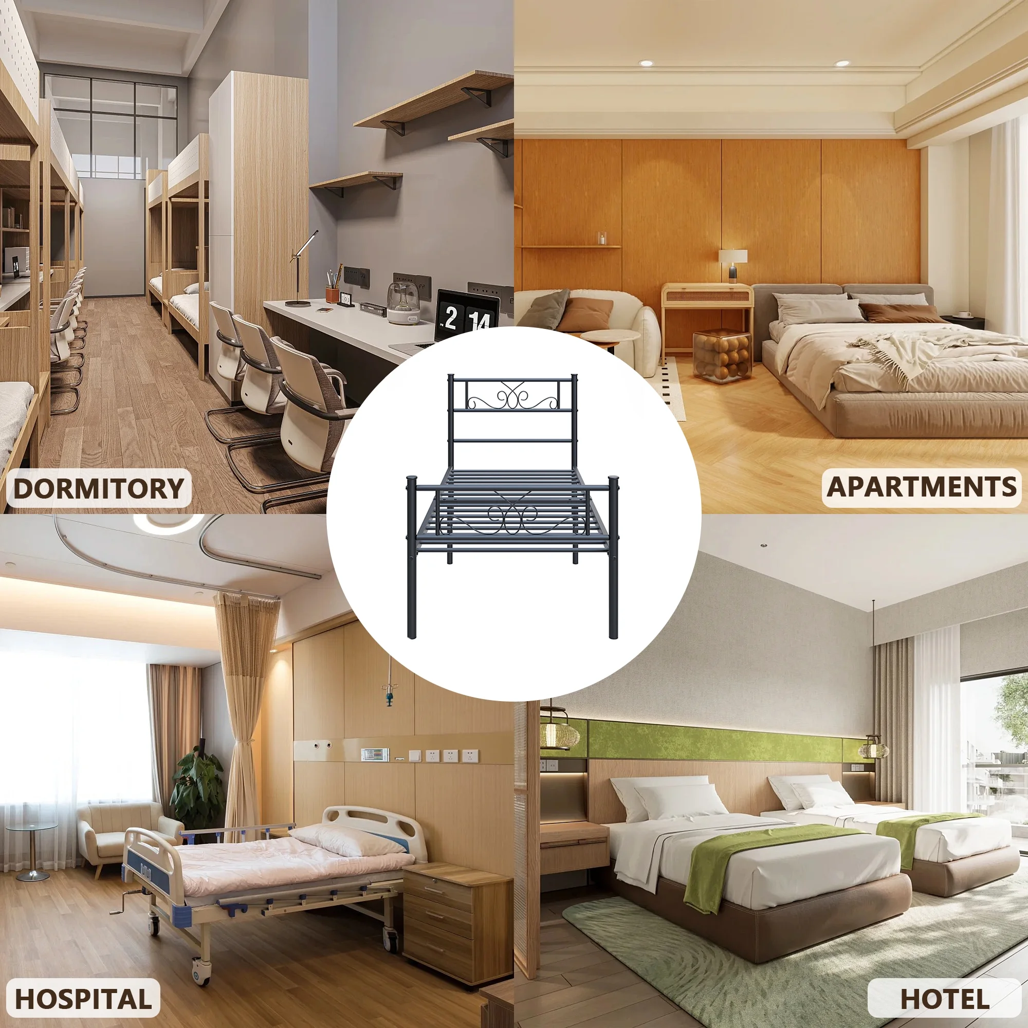 Yoneston Twin Size Metal Platform Bed Frame with Headboard for Kids and Teens Bedroom Furniture, Black