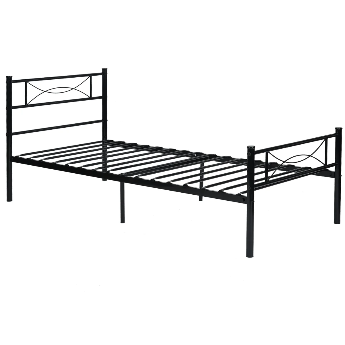 $62.77This Twin bed frame -77.5″ * 36″ * 34.8″ will revitalize and transform your sanctuary. The modern design of metal bed creates a warm and elegant feel to your sweet home. This bed frame with headboard features steel slats that provide strong support for your memory foam, hybrid, or spring mattress. Platform bed is 34.8 inches high with 12.5 inches clearance under the frame for valuable under bed storage. Mattress not included. Comes complete with all of the necessary parts for a sturdy and sophisticated focal point to the most important room in your home. It is the best gift for kids and adults.