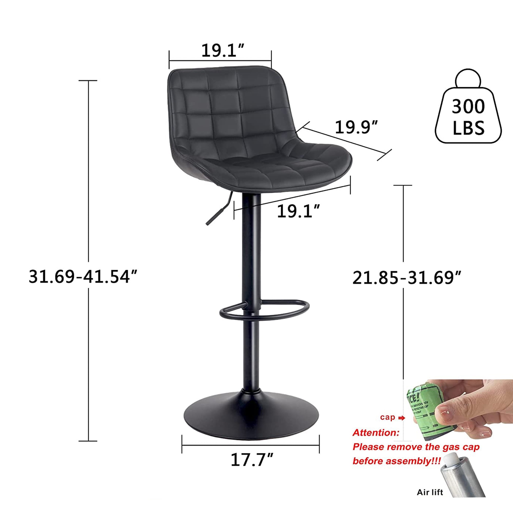 YOUNIKE Bar Stools with Soft Cushion Set of 2 Adjustable Swivel Bar Chairs Counter Stools,Square Grid Black