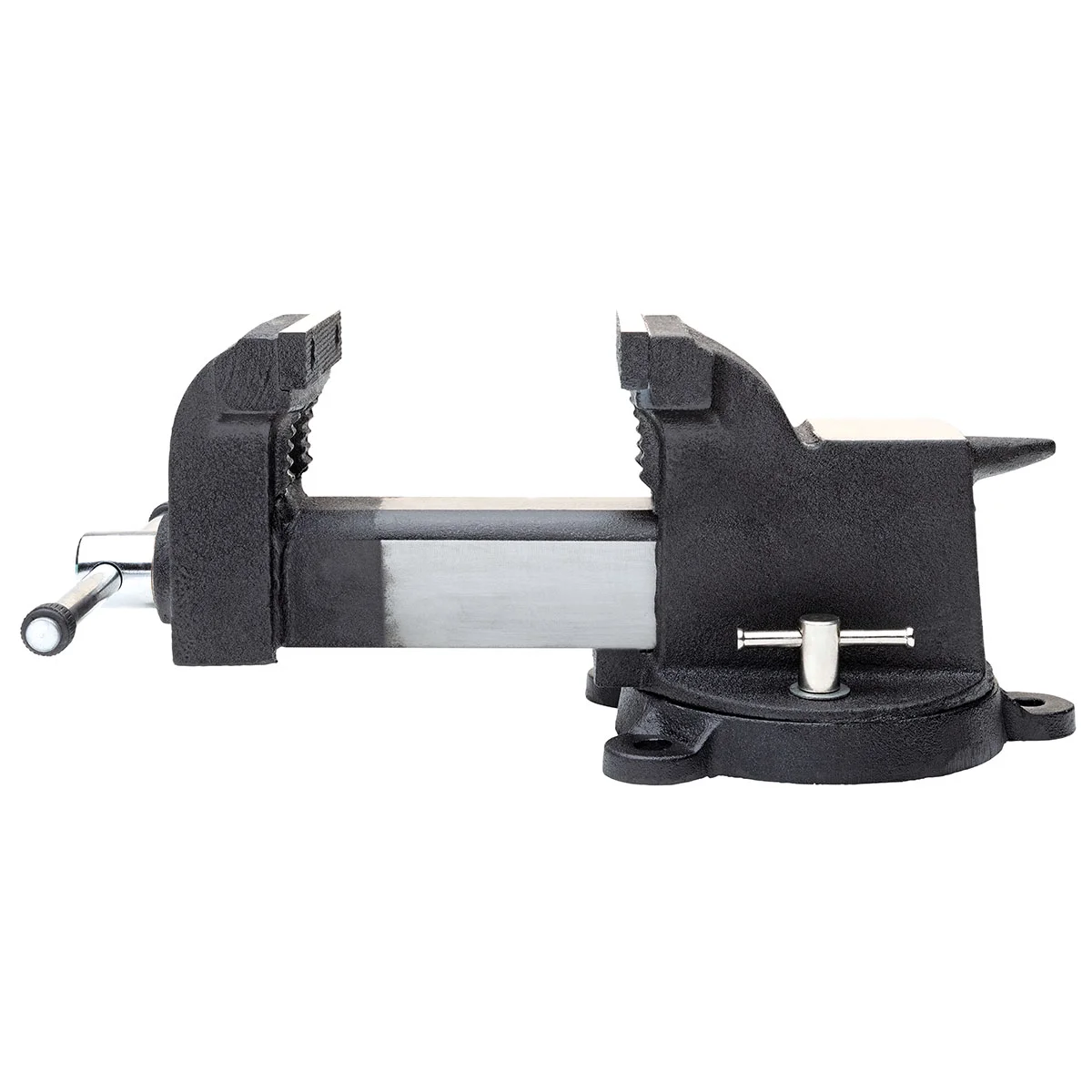 $60.19Original price was: $60.19.$51.59Current price is: $51.59.ALL Steel utility vises are light duty combination pipe & bench vises that are economically priced for various less demanding applications. The entire vise is constructed using structural cast steel. The bar covers the Acme threaded main screw. Each vise is equipped with replaceable hardened steel serrated jaws and built-in pipe jaws, 360 degree motion swivel base with equipped with two (2) lockdowns, a large reinforced anvil, and a no pinch main screw handle.