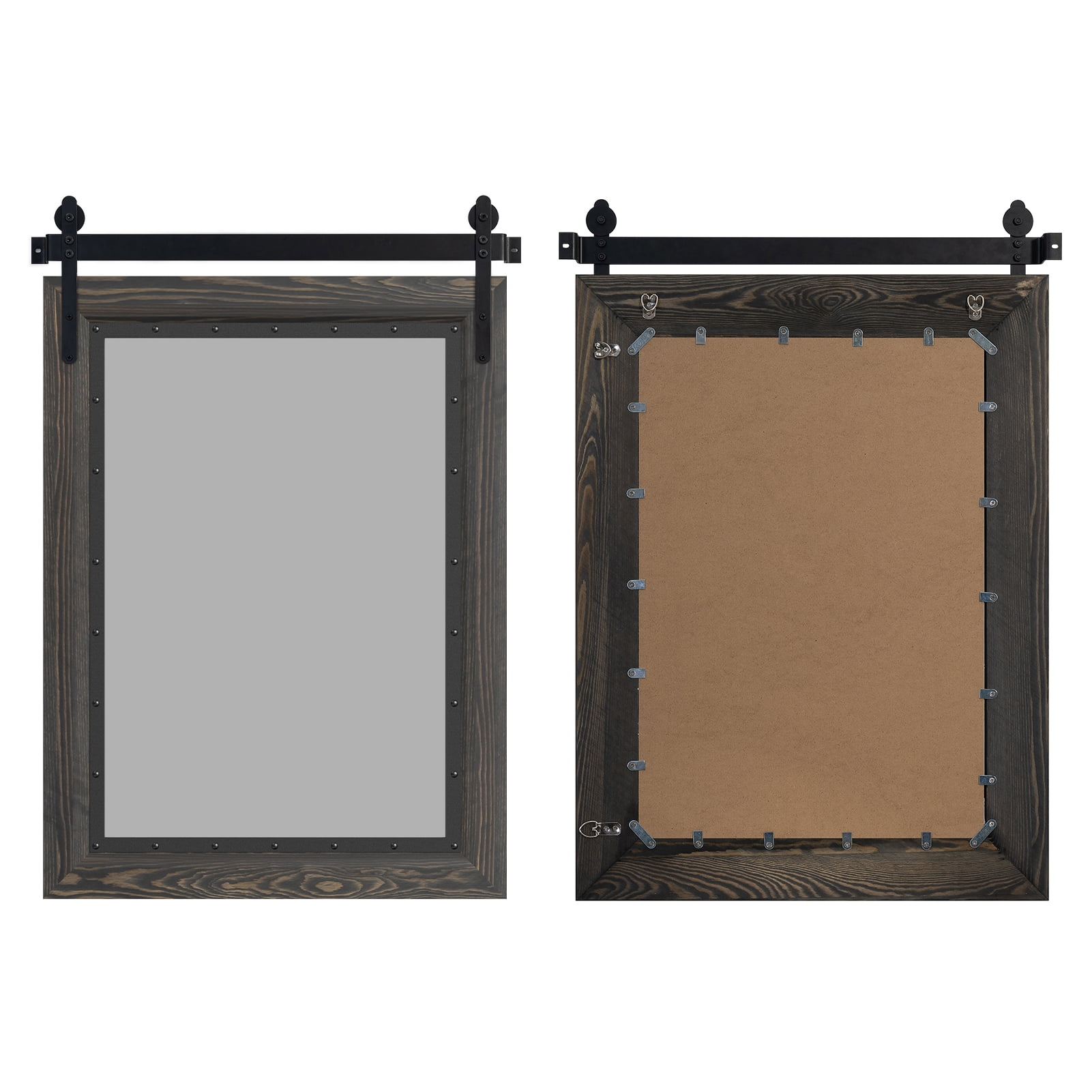YOSHOOT Farmhouse Barn Door Mirror,32″x24″ Rustic Bathroom Mirror, Wood Frame Wall Mirror, Wooden Mirror for Living Room Bedroom Entryway Wall Décor,Black