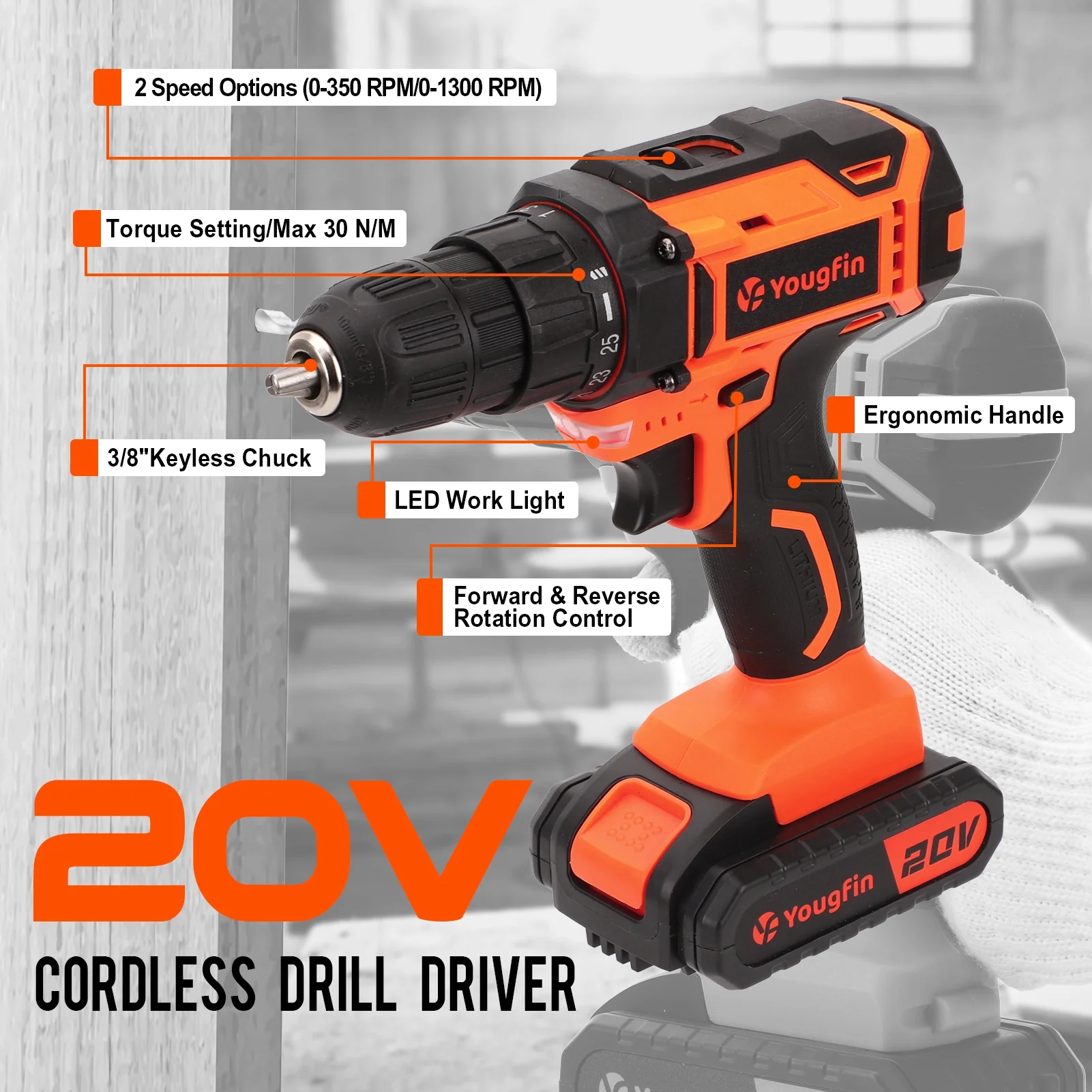 $41.27Yougfin Tool Kit with Cordless Drill Driver Set