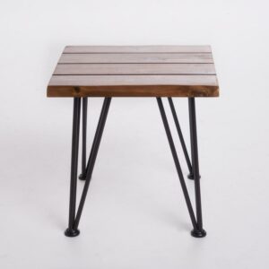 Zenith Outdoor Industrial Accent Table, Set of 2, Teak Finish, Rustic Metal