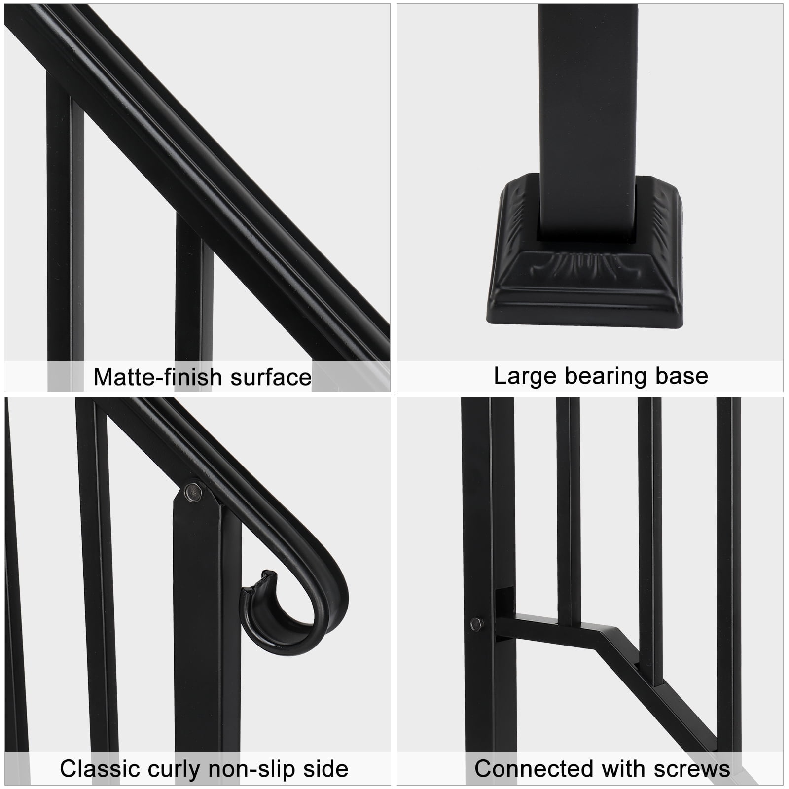 $60.19Original price was: $60.19.$47.29Current price is: $47.29.Introductions: This Zimtown Handrail for Stairs Fits 2 or 3 Steps Outdoor Stair Railing Picket Black Wrought Iron Handrail 38” is suitable for garden steps. The steps to enter your house are more beautiful. The flexible design of 2or3 steps allows you to choose freely. The whole shape is simple and smooth, giving you a more experience. The design with radian gives you a safer experience. Features: 1.This is one Picket #1 Handrail for 2 or 3 steps. 2.This step handrail is constructed with real wrought iron, not aluminum. It is more strong and reliable and will not fail or bend like aluminum. Also, stainless steel post mounts will not rust or flex. 3.Adopted powder coating technology, the handrail picket is designed to be matte black. 4.The iron picket and curved design is beautiful and stylish 5.The handrail includes all necessary assembly and installation hardware. 6.Suitable for gardens, residential buildings, commercial office buildings, hotels, etc. Notes: Due to the different heights of the steps, please check the size before purchasing. This product includes a single handrail only! Specifications: 1.Model: 2or3 steps 2.Color: Matte black 3.Material: Real Iron Metal 4.Style: Iron Picket Package Includes: 1 x Handrail Powder Coating Black 1 x Installation Kit Note: If you encounter difficulties with installation, feel free to contact customer service for assistance or to request an installation guide video.