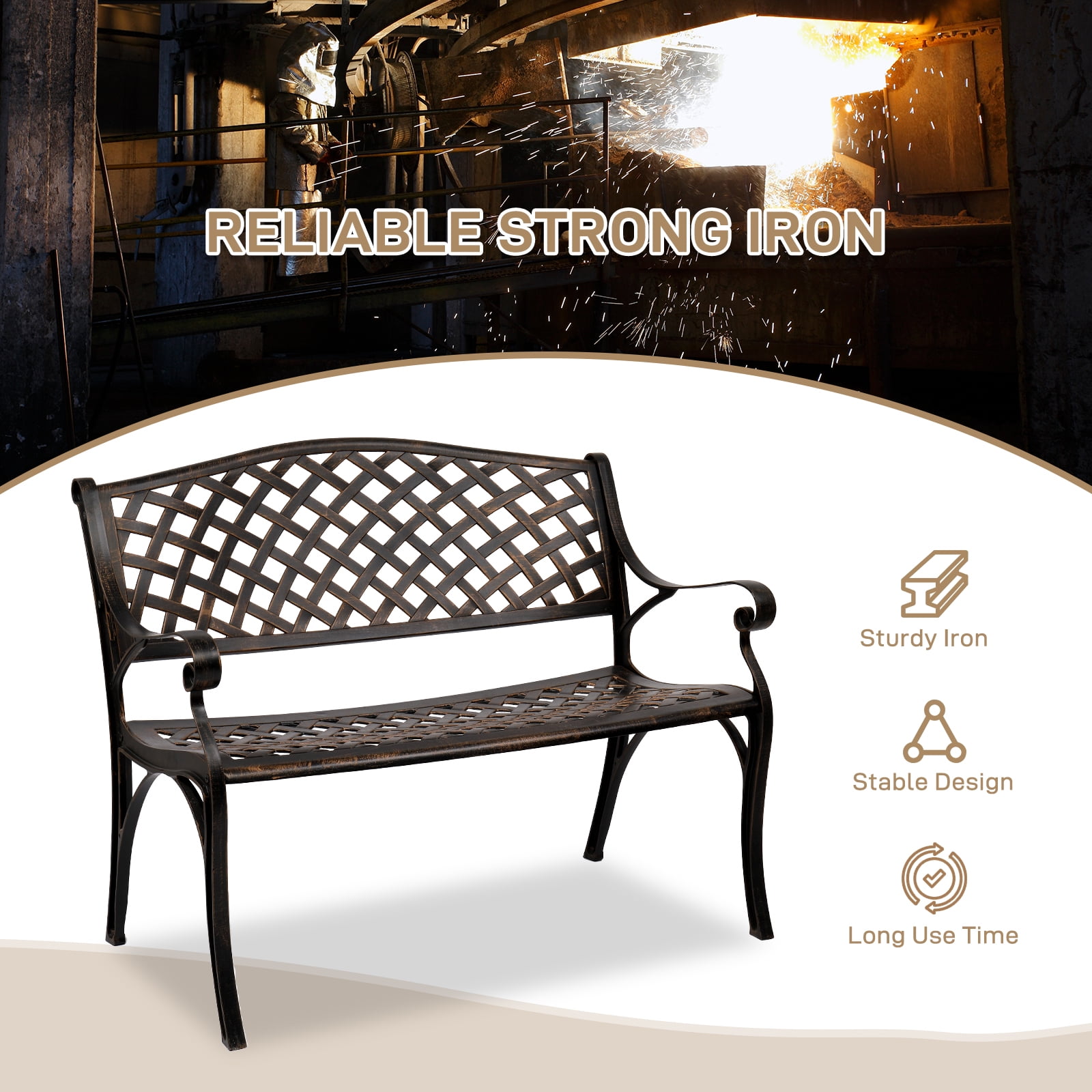 Zimtown 40.5″ Aluminum Garden Bench with Armrests for Outdoor, Patio, Bronze