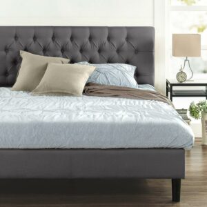 Zinus Lottie 43″ Gray Upholstered Platform Bed Frame, Queen