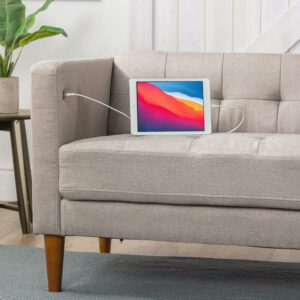 Zinus Lottie 35″ Upholstered Platform Bed Frame with USB Ports, Grey, Queen