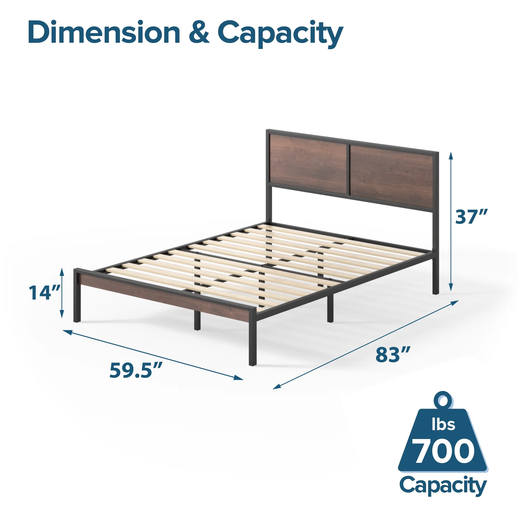$225.32Original price was: $225.32.$109.22Current price is: $109.22.Whoever once told us “don’t be a square” clearly never got a good look at the Lottie Platform Bed. Packed with modern style and traditional comfort from its bold geometric headboard and foam padded upholstered frame, it’s a bed loaded with not only personality, but incredibly sound mattress support too. It’s equipped with a wood slat platform made for supporting any mattress without the added box spring, and its framework is constructed with durable steel and center support legs that eliminate sagging and extend mattress life. In other words, your mattress will feel even dreamier on top of this dependable foundation. And the packaging of this bed is about as clever as they come, with all the parts, tools and instructions you’ll need to build it packed in the back of the headboard compartment, ready to be unzipped and assembled in less than an hour. On top of bringing you the world’s simplest assembly, we’ve also included a 5-year warranty because we believe in delivering you comfort, style and affordability, not stress. And as far as the Lottie goes, thousands of happy customers agree that we’ve done just that. Age group: Adult.
