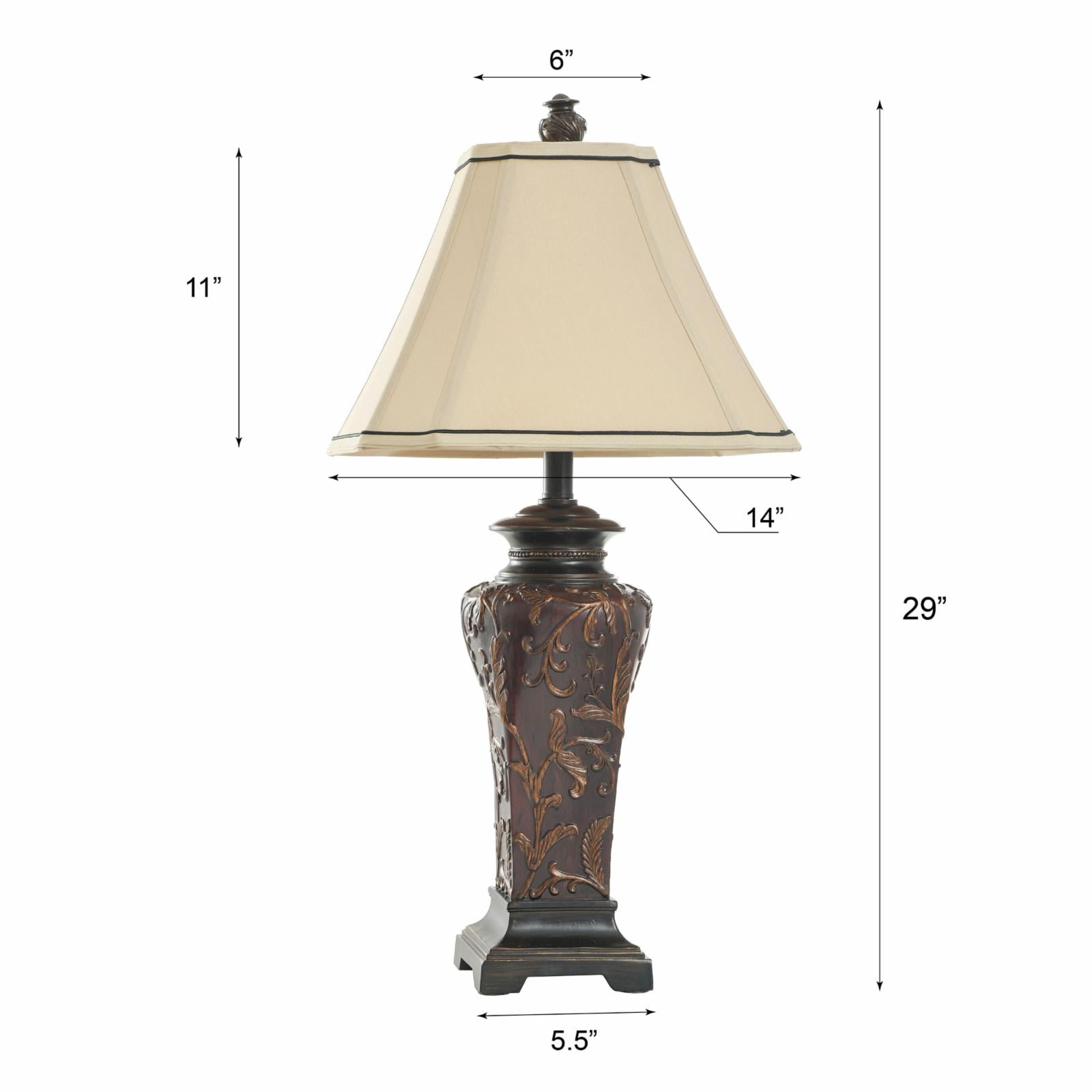 $68.45Featuring vivid colors and intricate designs, this table lamp is a bright addition to a bedroom, office, or hallway. The frame has a crimson finish that accentuates every aspect of its ornate design, and the cream fabric shade has dark accent lines around the top and bottom. Display this striking crimson lamp on a dining room buffet or a living room end table.