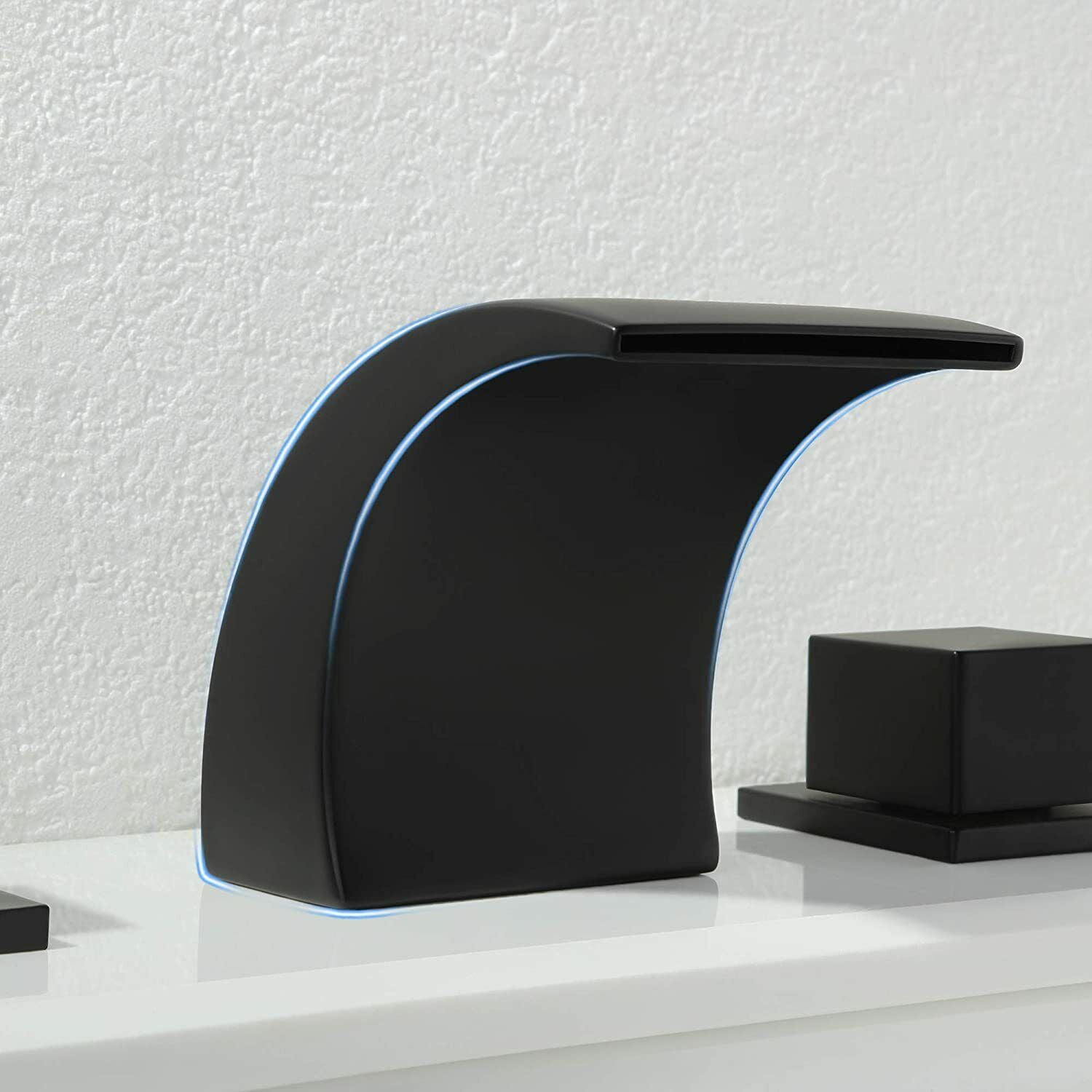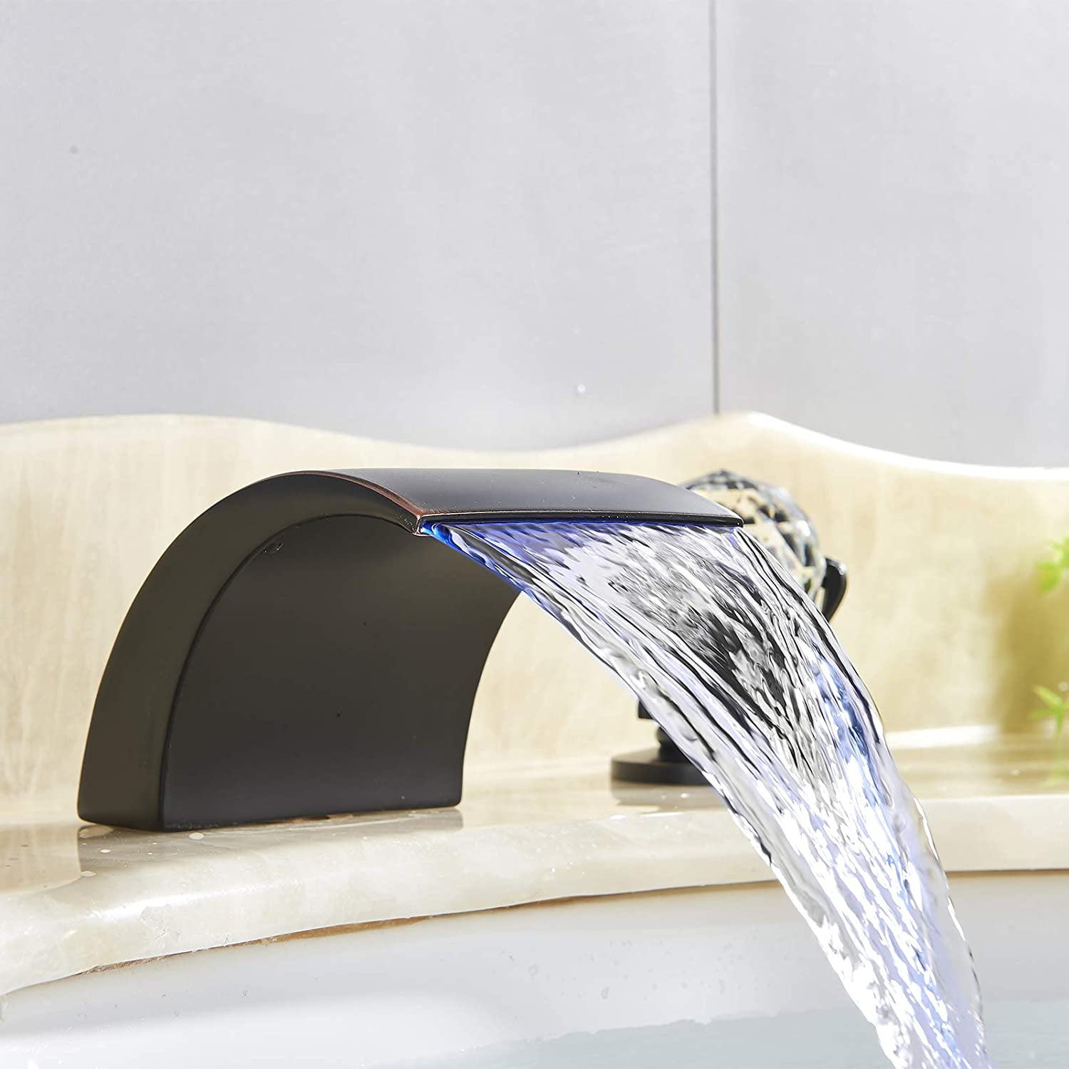 Zovajonia 3 Hole Bathroom Faucet, Matte Black Dual Crystal Knobs Vanity Basin LED Sink Faucet Mixer Bronze Bath Faucets ,Widespread bathroom faucets for sink 3 hole Waterfall Tub Faucet