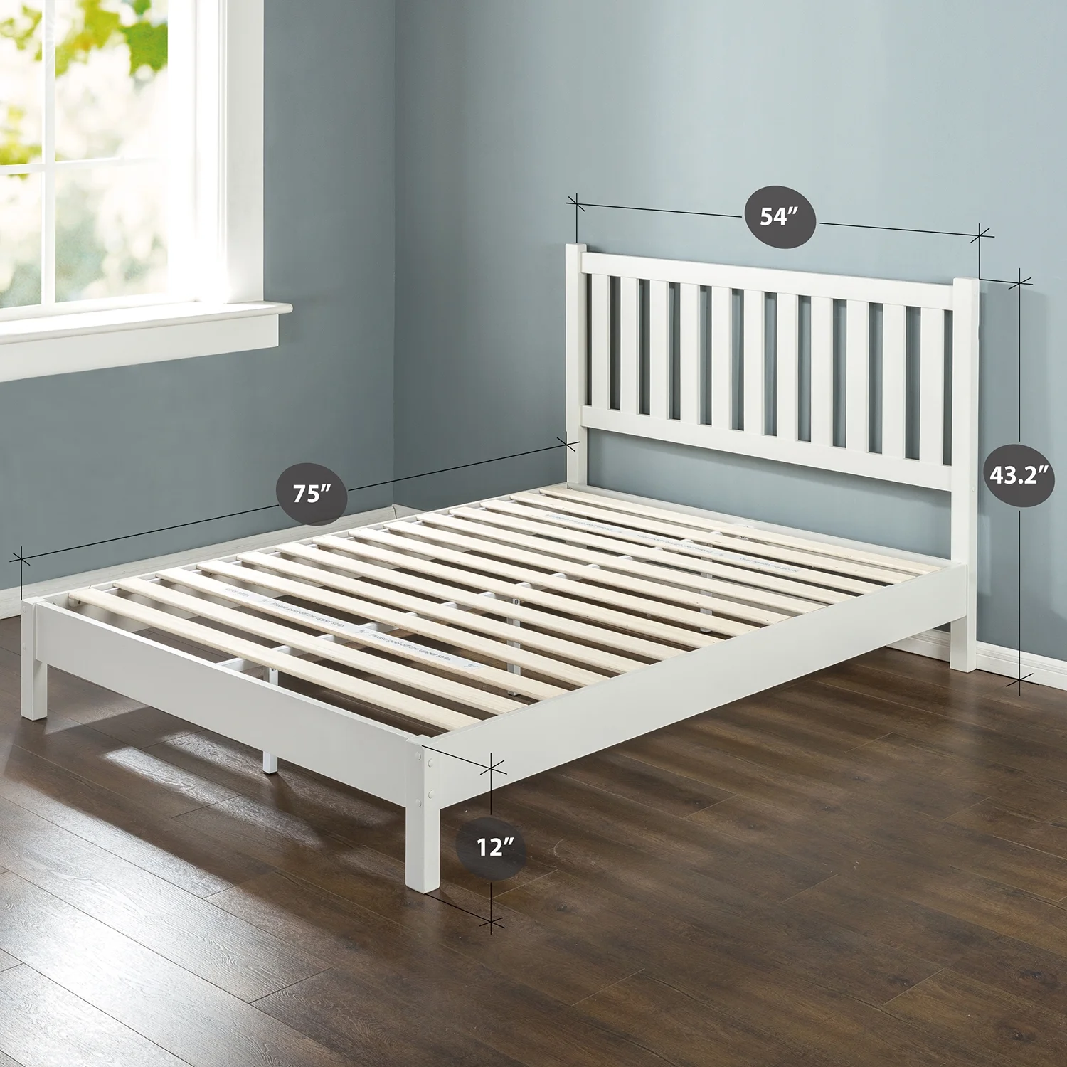 $239.94The Zinus Deluxe wood platform bed with slatted Mission style headboard works well with any style of home décor. The 5.75 inch frame and legs are made of solid wood to support your memory foam, latex, or spring mattress. The Zinus off-white wood platform bed is 12 inches high and designed for use with or without a box spring foundation. Stylish and strong support for your mattress at an affordable price. At Zinus, we believe that harmony makes the world go around. So, we’re constantly evolving and aspiring to products that are easy to order, expertly packaged and quick to assemble. Let’s just say we are re-imagining “convenience and comfort” one room at a time. Join us on our journey. Live in wonder. Age Group: Adult, Universal.
