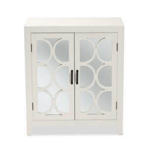 Baxton Studio Garcelle Modern and Contemporary White Finished Wood and Mirrored Glass 2-Door Sideboard