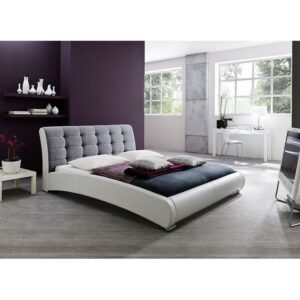 Baxton Studio Guerin Queen Contemporary Wood and Faux Leather Platform Bed, Gray/White