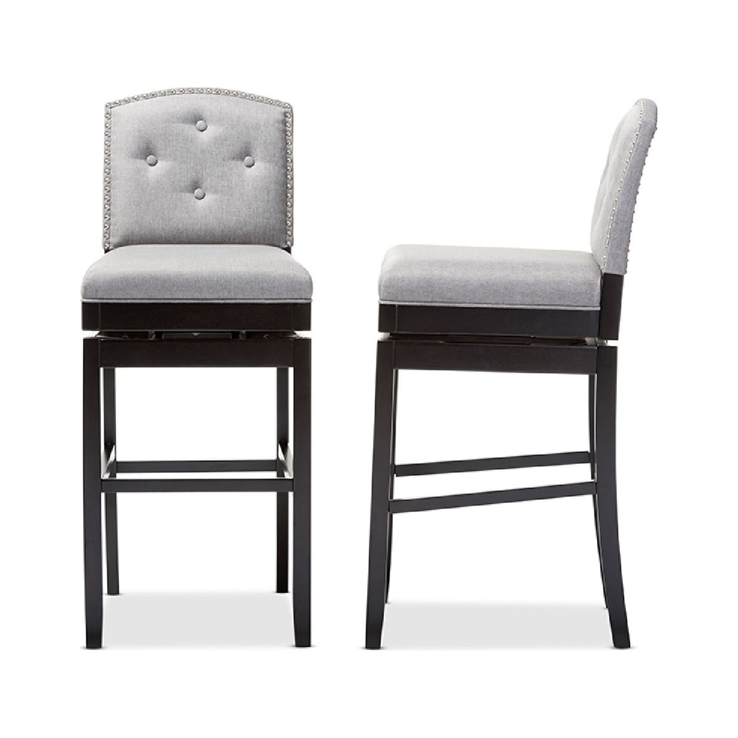 Baxton Studio Ginaro Modern and Contemporary Grey Fabric Button-tufted Upholstered Swivel Bar Stool (Set of 2)