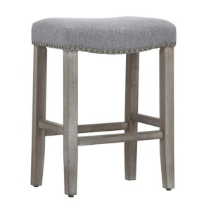 24″ Inch Upholstered Saddle Seat Bar Stool (Set of 2), Antique Gray/Gray