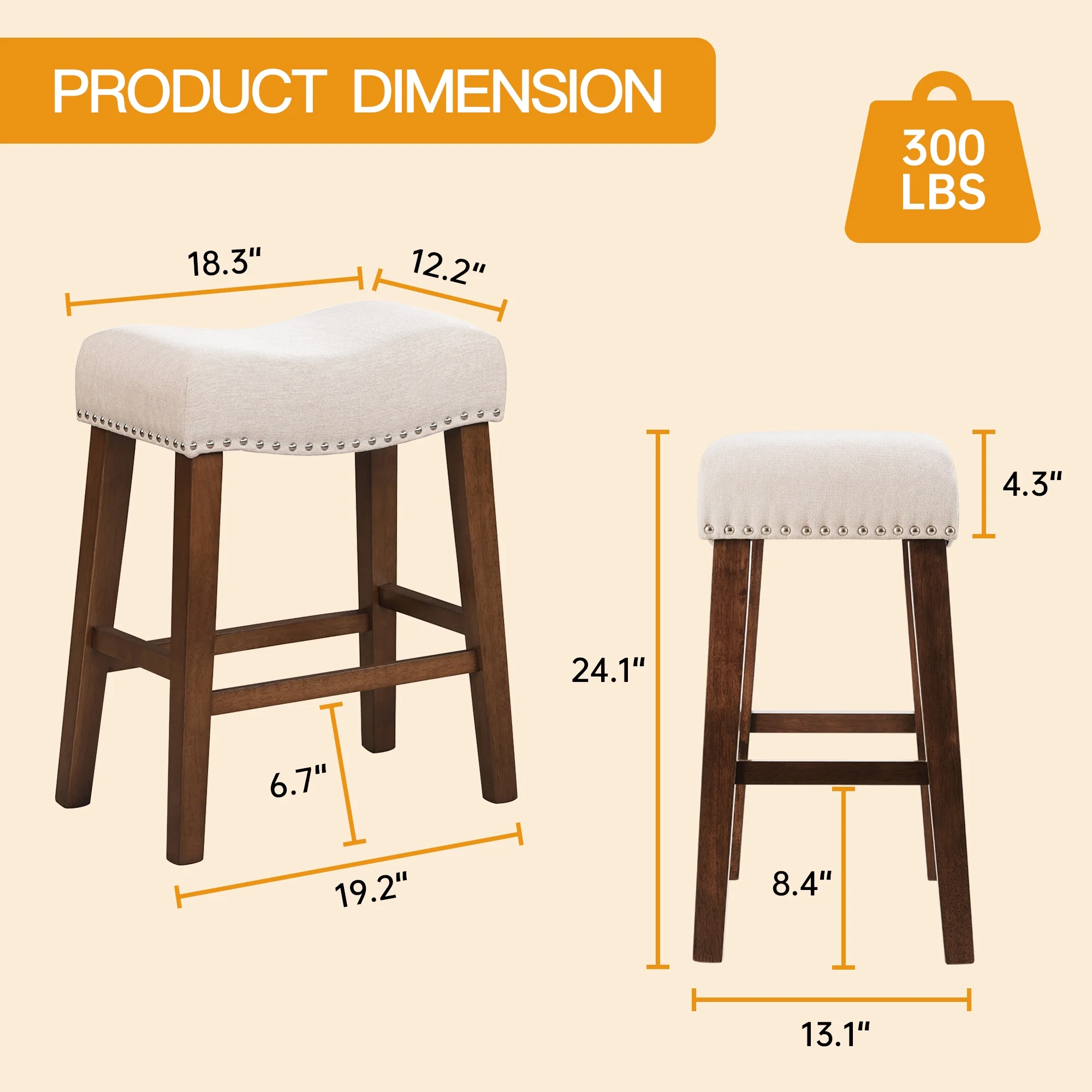 24 Inch Counter Height Bar Stools Set of 2 Saddle Barstools for Kitchen Island, Kitchen Stools with Nailhead Trim, Beige