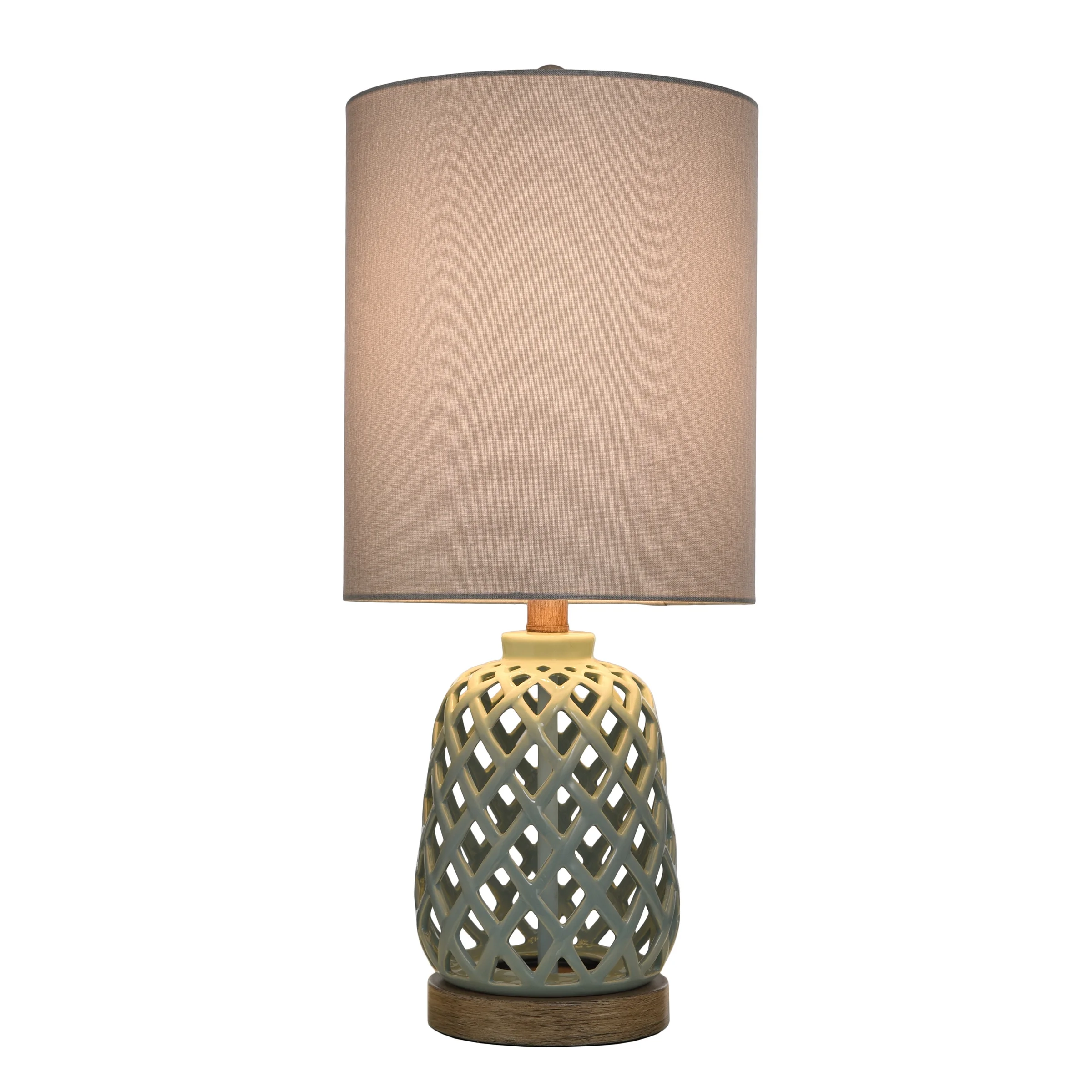 $54.17A cool new take on a vintage style, this ceramic table lamp is finished in a soft blue for a standout quality that’s equally easy to match. Made to meet exacting artisan standards, this lamp is designed with an open lattice body and fabric hardback shade in white. It’s a bold selection for bringing life to tabletops throughout your mid-century inspired decor.