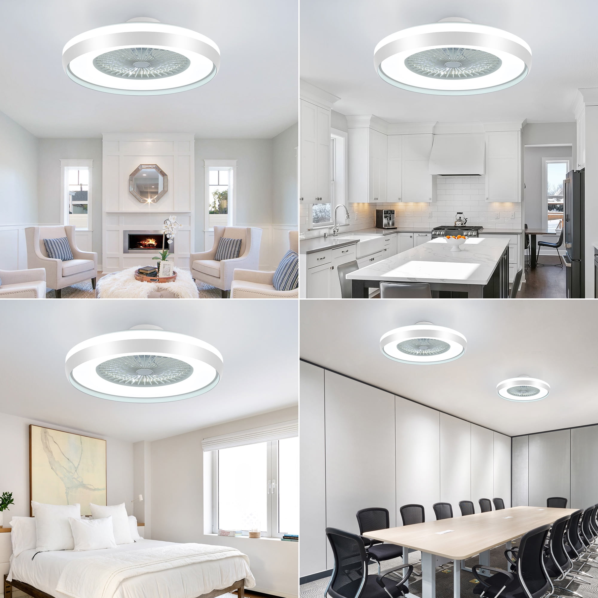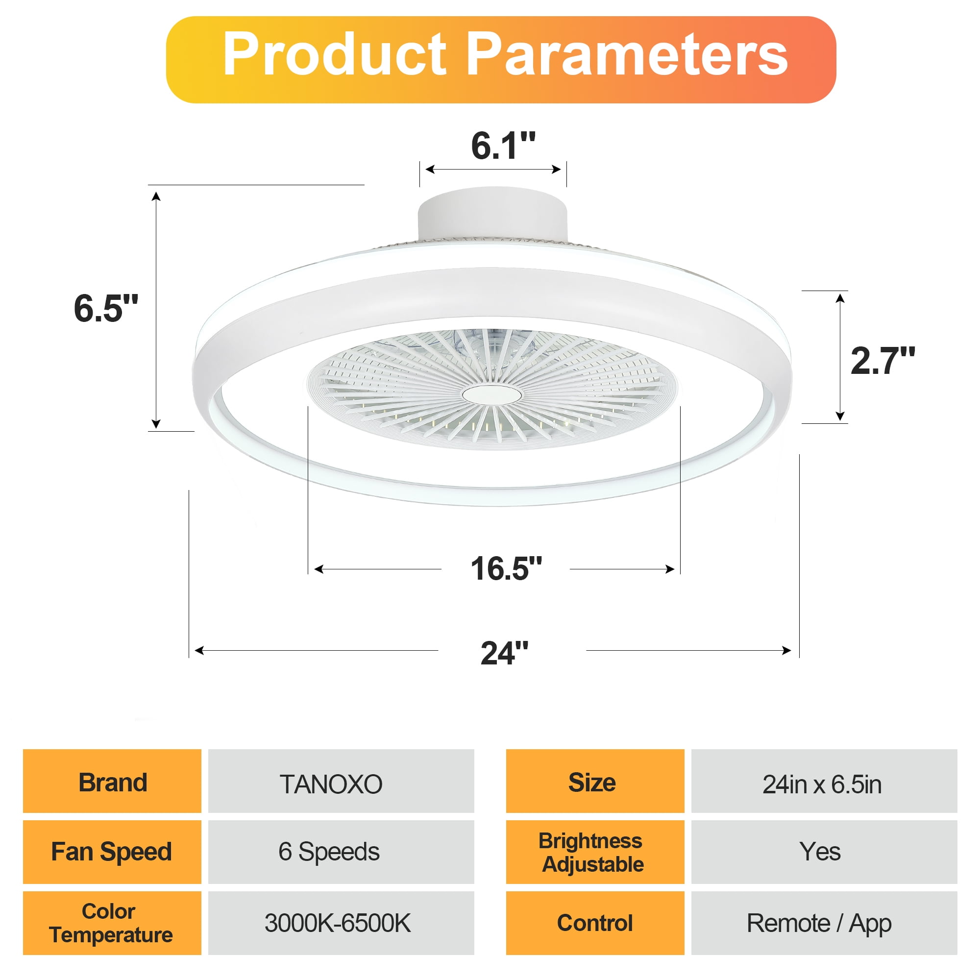 24″ Low Profile Ceiling Fans with Lights, APP and Remote Control, 3 Color Dimmable, Reversible 6 Speeds, Timing Setting, Bladeless Flush Mount LED Ceiling Fan