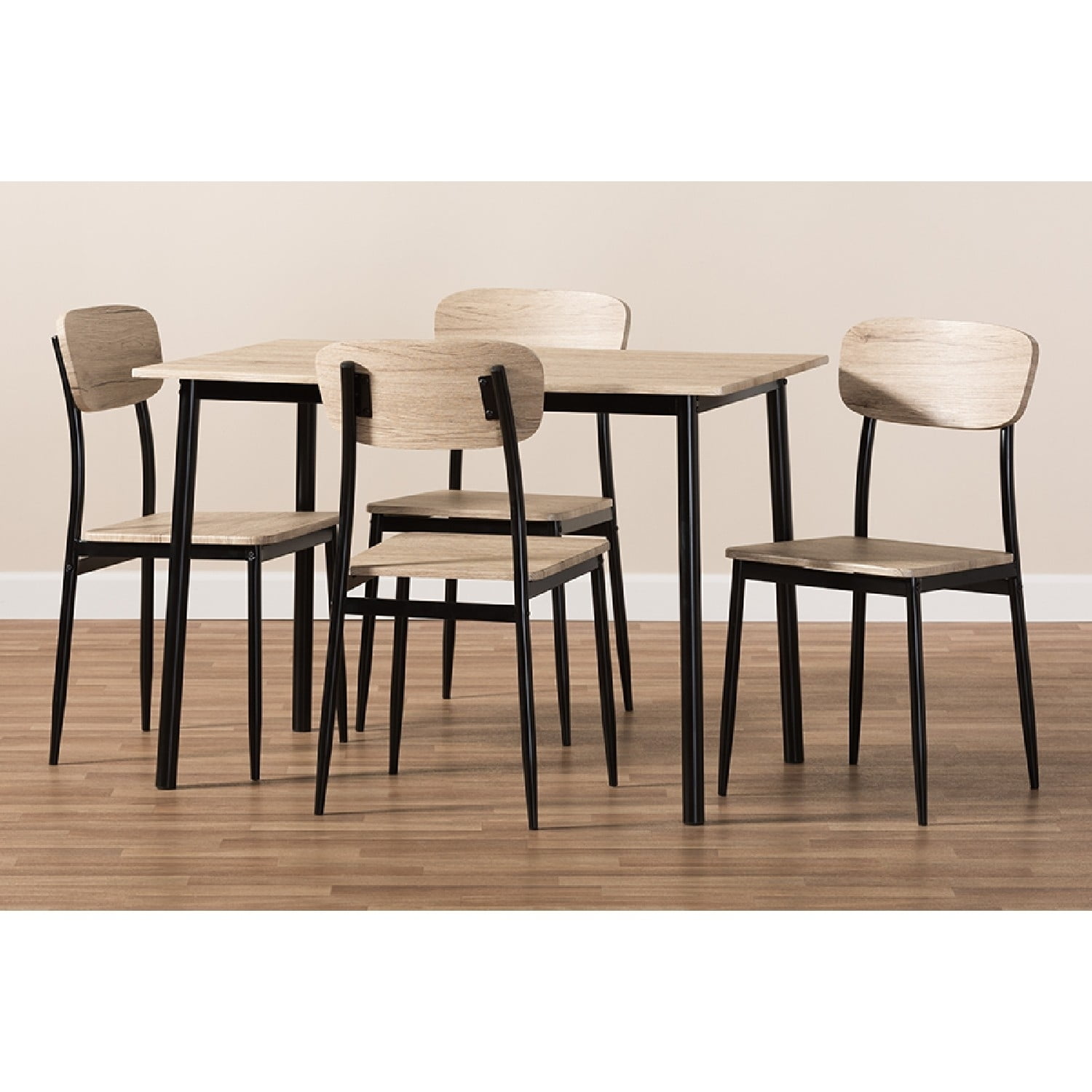 Baxton Studio Honore Mid-Century Modern Light Brown Wood Finished Matte Black Frame 5-Piece Dining Set