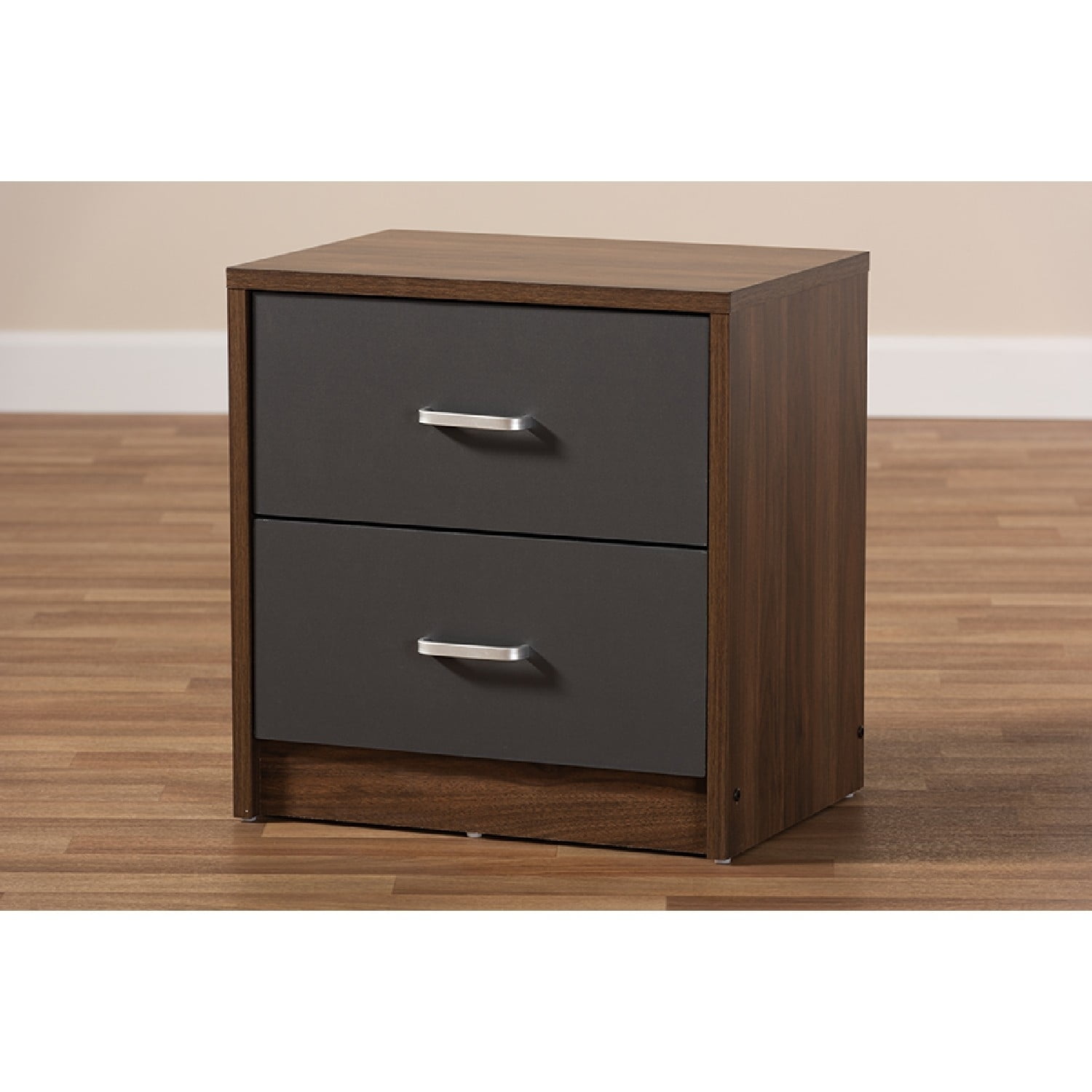 Baxton Studio Hansel Modern and Contemporary 2-Drawer Dark Brown and Dark Grey Finished Nightstand