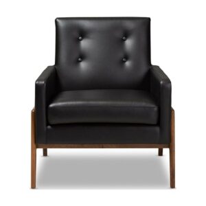 Baxton Studio Perris Mid-Century Modern Black Faux Leather Upholstered Walnut Wood Lounge Chair