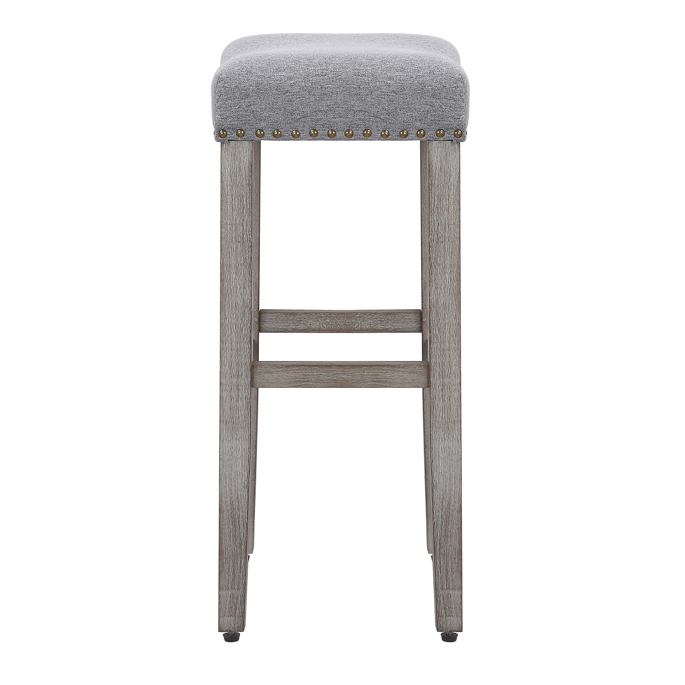 $64.49Ideal for your kitchen and home bar, this 29 Inch stool will bring you style and comfort with its well-cushioned saddle upholstered seat. Crafted from high quality solid rubberwod, this bar stool boasts an undestated craftsmanship that makes it perfect for your kitchen, dining room, or bar area. Designed with comfort in mind, indulge yourself in the bar stool’s high denisty foam cushioning. Featuring a linen seat, polished bronzechrome nail head trim, and antique gray stained wood legs with perfectly placed footrest.