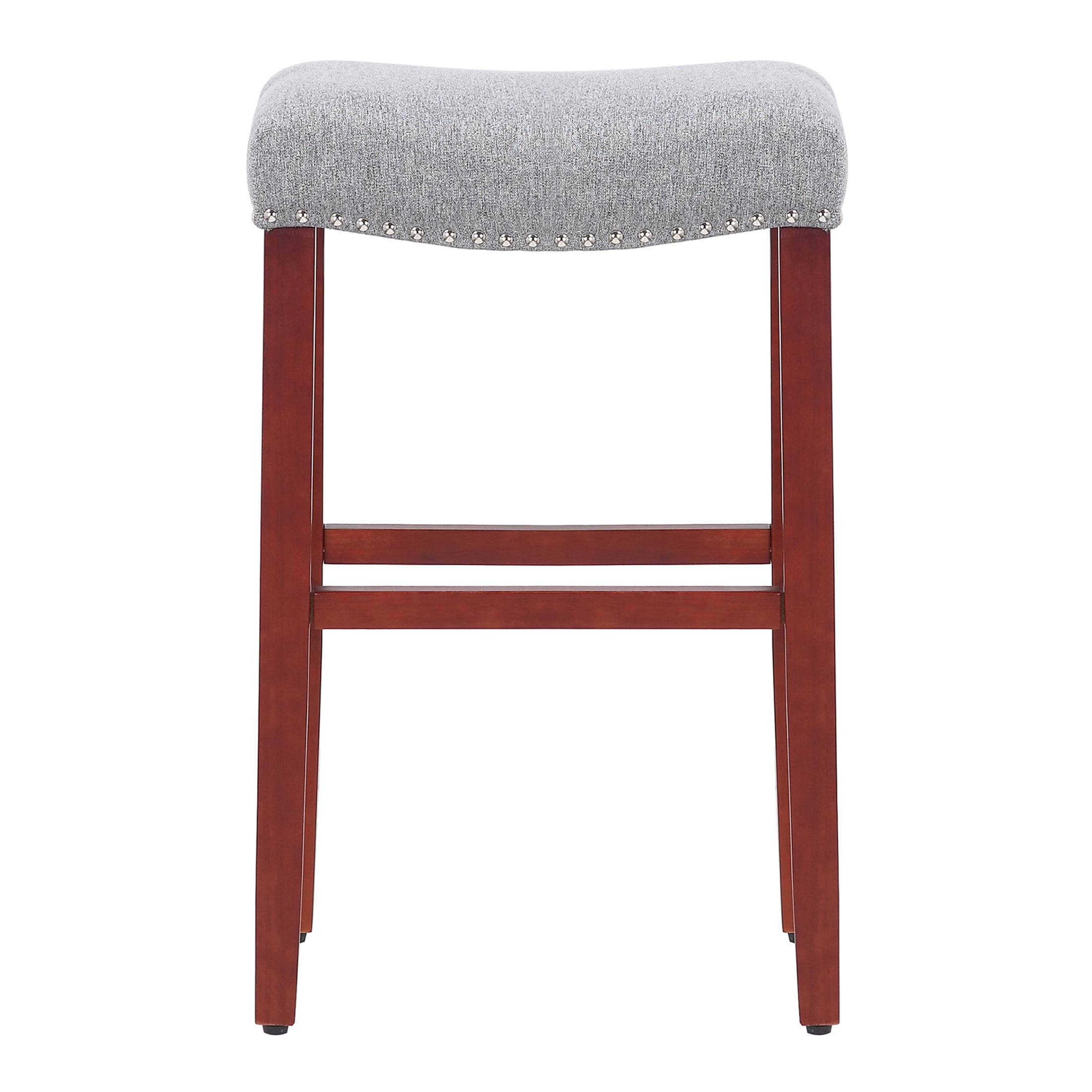 $50.63Ideal for your kitchen and home bar, this 29 Inch stool will bring you style and comfort with its well-cushioned saddle upholstered seat. Crafted from high quality solid rubberwod, this bar stool boasts an undestated craftsmanship that makes it perfect for your kitchen, dining room, or bar area. Designed with comfort in mind, indulge yourself in the bar stool’s high denisty foam cushioning. Featuring a linen seat, polished chrome nail head trim, and cherry stained wood legs with perfectly placed footrest.