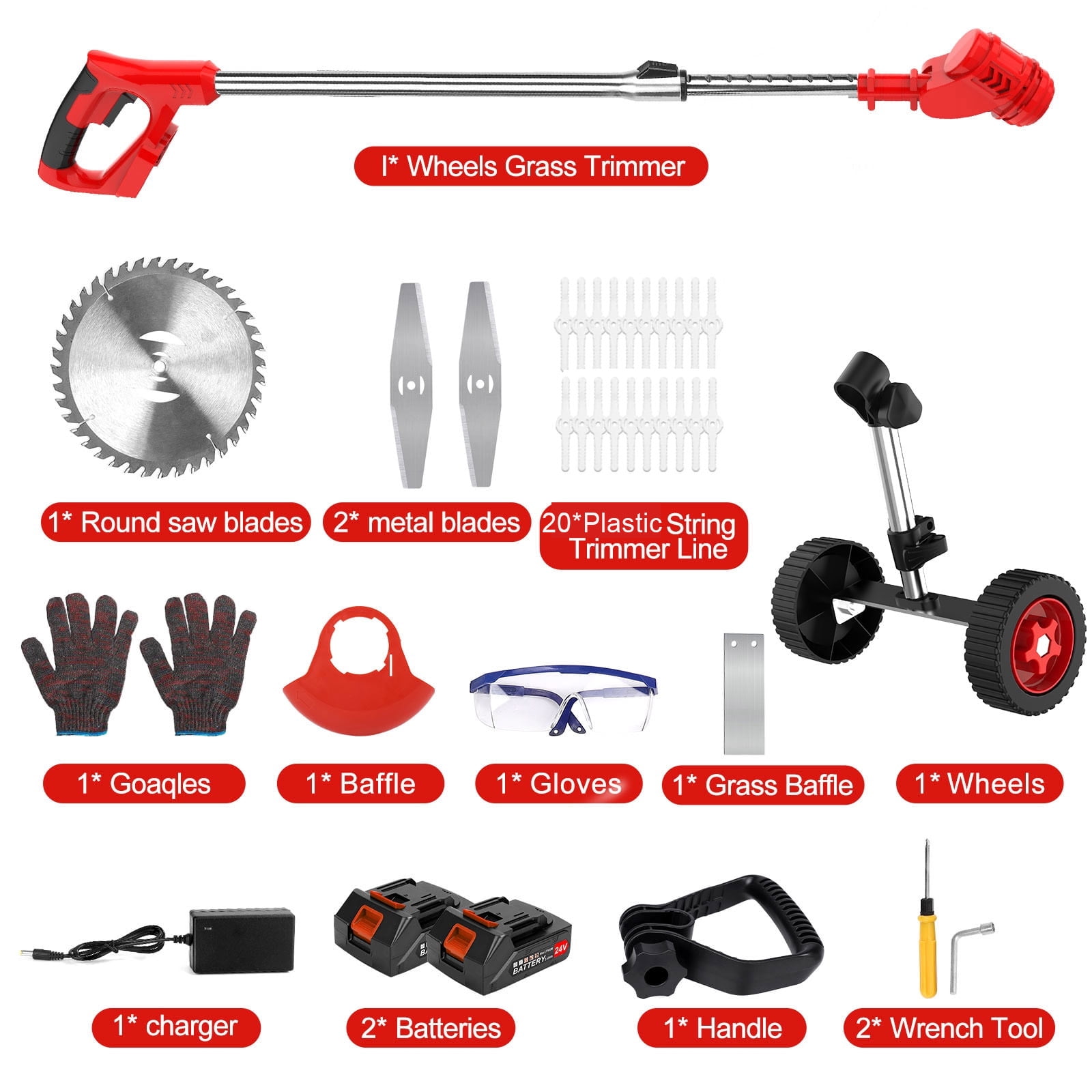24V 650W Lawn Mover Electric Grass Trimmer Cordless W/2 Batteries, Battery Weed Eater, Electric Weed Wacker, Lawn Mower Cordless Pruning Cutter Weed Wacker Garden Trimming Tool
