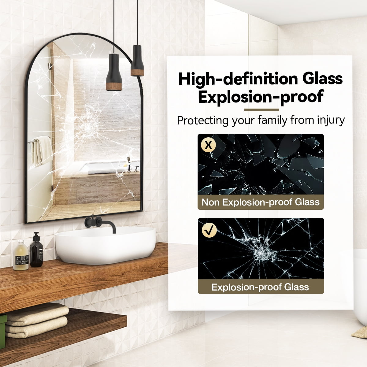 $85.99Scifil black arched wall mirror is designed with elegance and fashion to enhance and expand your space. Our bathroom vanity arch wall mirror uses high-grade metal materials and HD Silver Mirror. The HD arch mirror makes the arched vanity wall mirror 35% brighter than the traditional mirror, and reflectivity increases to more than 90% without any visual distortion. The black arched wall mirror is perfect for brightening common areas, such as bathrooms, living rooms, bedrooms, entranceways and foyers, hallways, offices, hotels and more. Hang this black arched bathroom vanity wall mirror to add light and enhance the beauty of your home! Click on the link below for more Scifil Bathroom Mirrors Wall Mirror: Scifil Black Bathroom Wall Mirror, $89.99 Scifil 24 Inch Black Round Bathroom Wall Mirror, $59.99