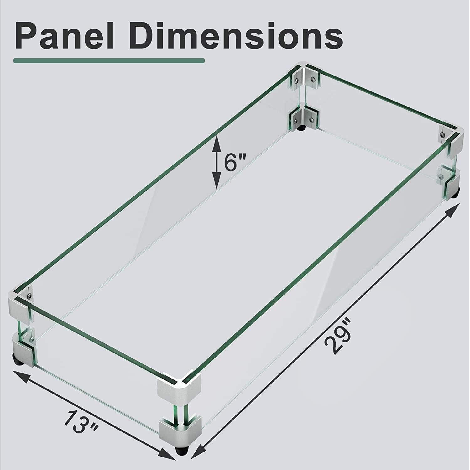 29 x 13 Inch Rectangle Fire Pit Wind Guard, Glass Wind Guard for Rectangular Fire Pit Table, Sturdy Tempered Glass Panel with Stability Aluminum Corner Bracket and Feet, Simple Assembly