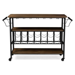 Baxton Studio Textured Finish Metal Distressed Wood Mobile Kitchen Bar Serving Wine Cart
