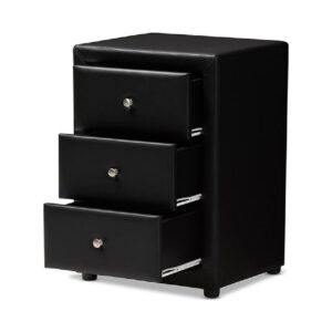 Baxton Studio Tessa Modern and Contemporary Black Faux Leather Upholstered 3-Drawer Nightstand