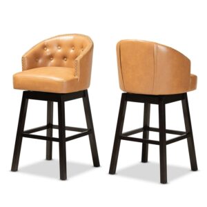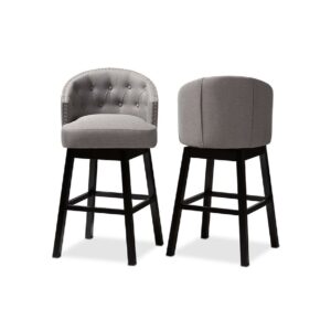 Baxton Studio Theron Transitional Gray Fabric Upholstered Wood Swivel Bar Stool Set of 2