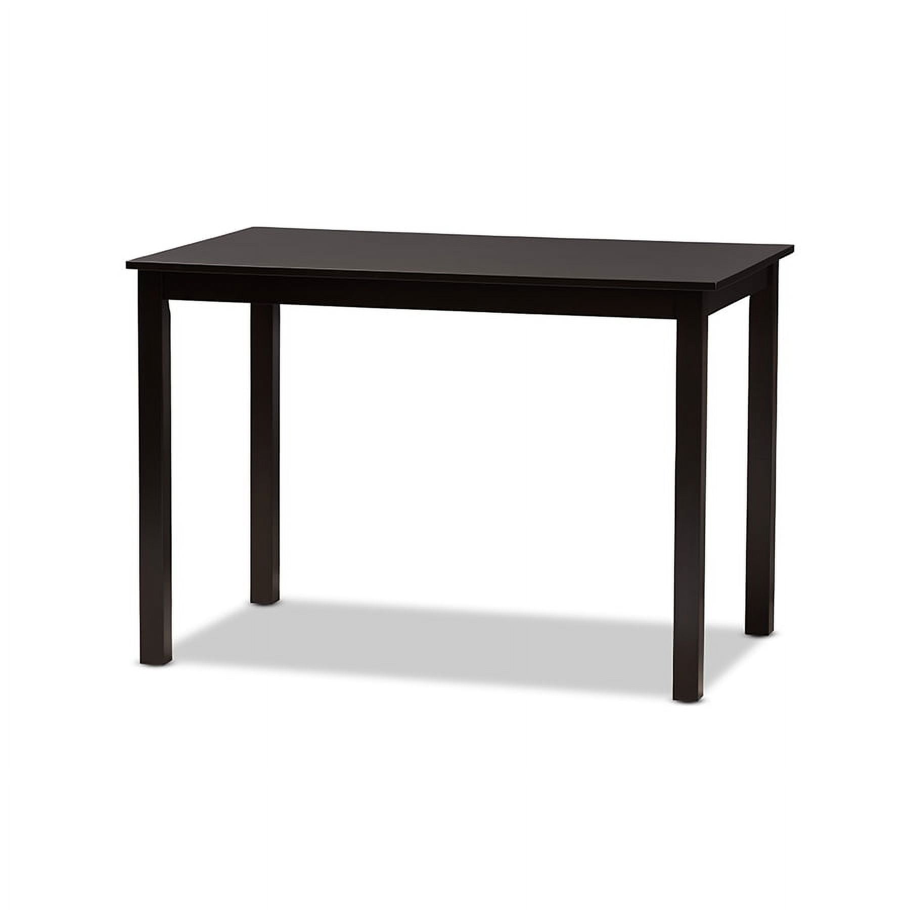 $283.79Baxton Studio Thea Modern and Contemporary Dark Brown Faux Leather Upholstered 5-Piece Dining Set Style to spare. Our Thea modern and contemporary 5-piece dining set expresses the pleasures of simplicity. Contemporary in its approach and classic in its construction, this five-piece dining set boasts a dark brown theme (via wooden frames and faux leather seats) that easily forms a canvas against more flamboyant accents or wall dcor. The armless-chair design provides infinite elbow room. Ruggedly constructed for years of use. Made in Malaysia, the Thea requires assembly. Specifications: Modern and contemporary 5-piece dining set Set includes one table and four chairs Solid rubberwood construction with mdf table top Dark brown finishing Dining table is with shaker legs Upholstered seat in dark brown faux leather Assembly required
