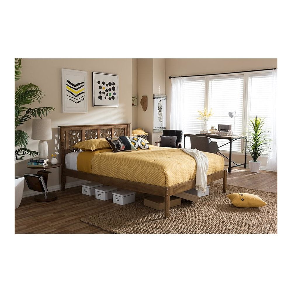 $405.91A natural beauty, the Baxton Studio Trina Tree Branch Inspired Platform Bed is graced with cut-out tree branch details and a warm walnut finish. This walnut, rubberwood, and polyresin platform bed includes a slat system that replaces the need for box springs or a foundation. The low profile design infuses modern style into your bedroom. It comes in your choice of available sizes.