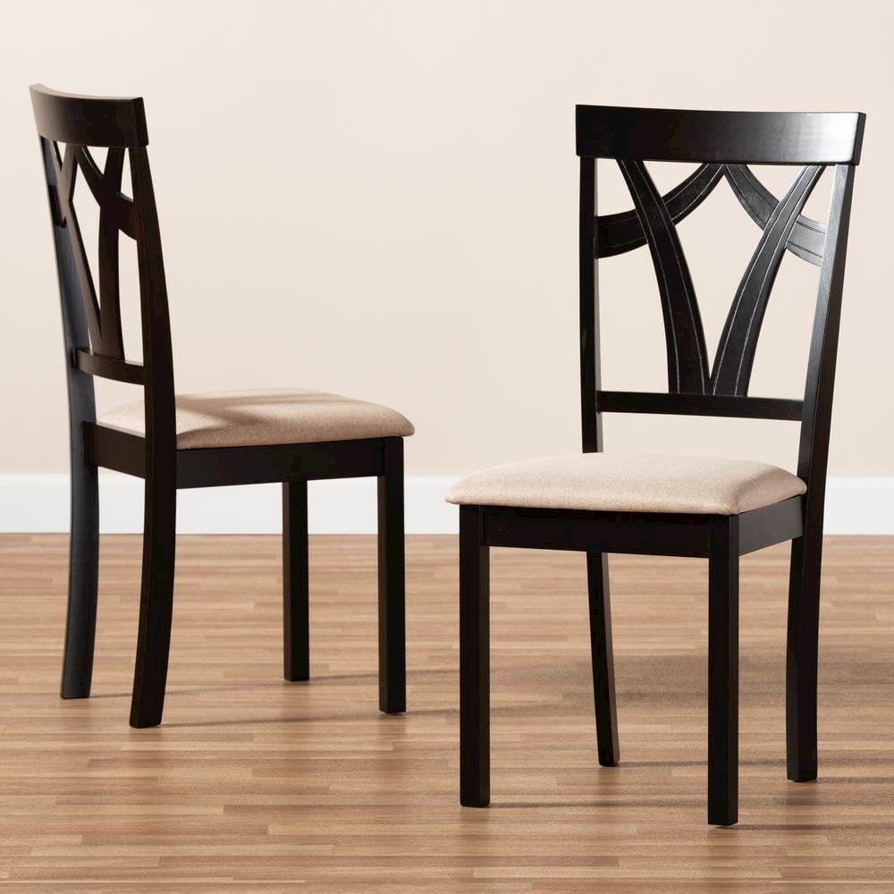 Baxton Studio Sylvia Modern and Contemporary Sand Fabric Upholstered and Espresso Brown Finished Dining Chair Set