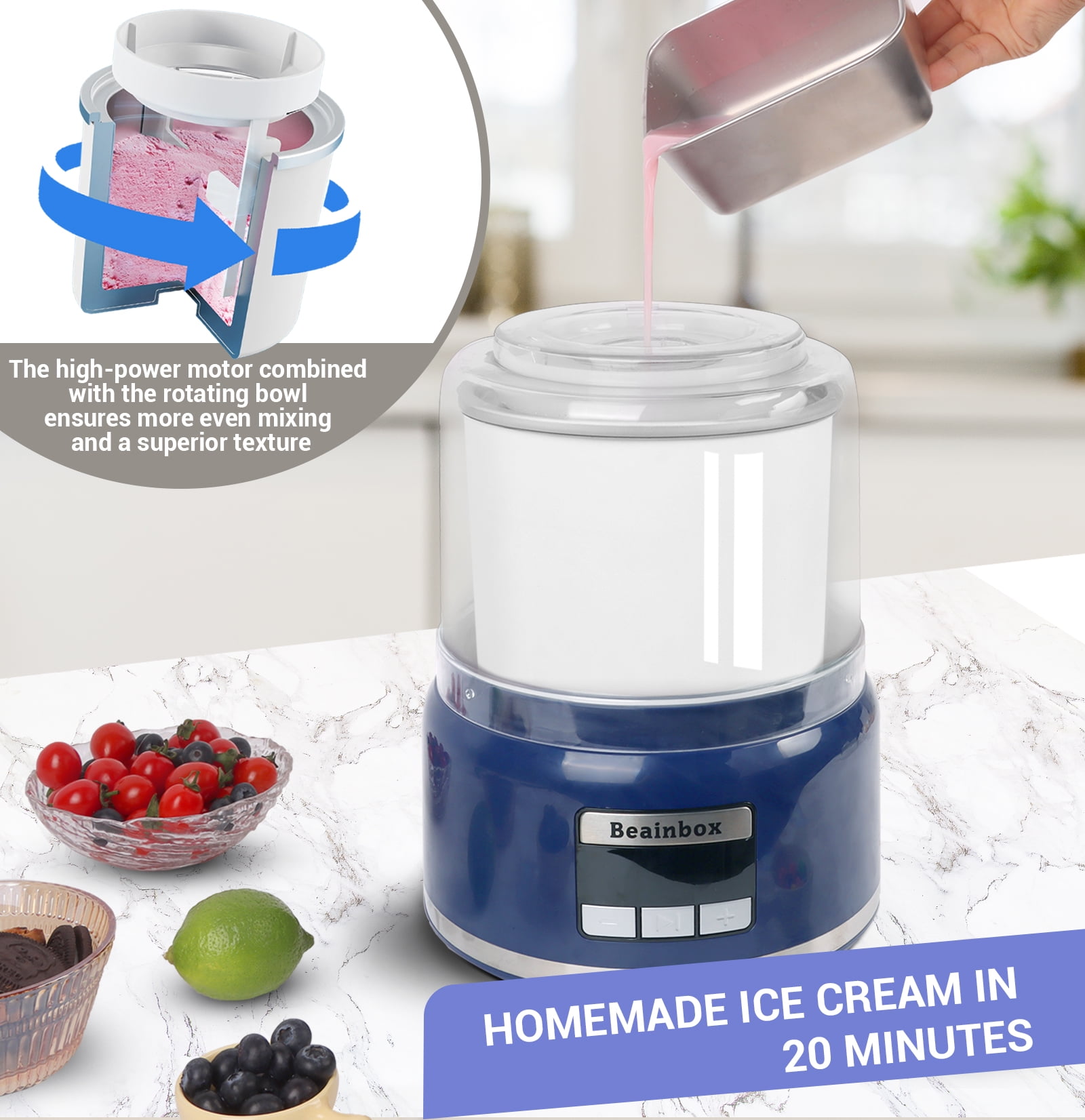 Beainbox 2.11-Quart Ice Cream Maker Machine with LCD Screen & Scoop for Frozen Yogurt Sorbet Gelato