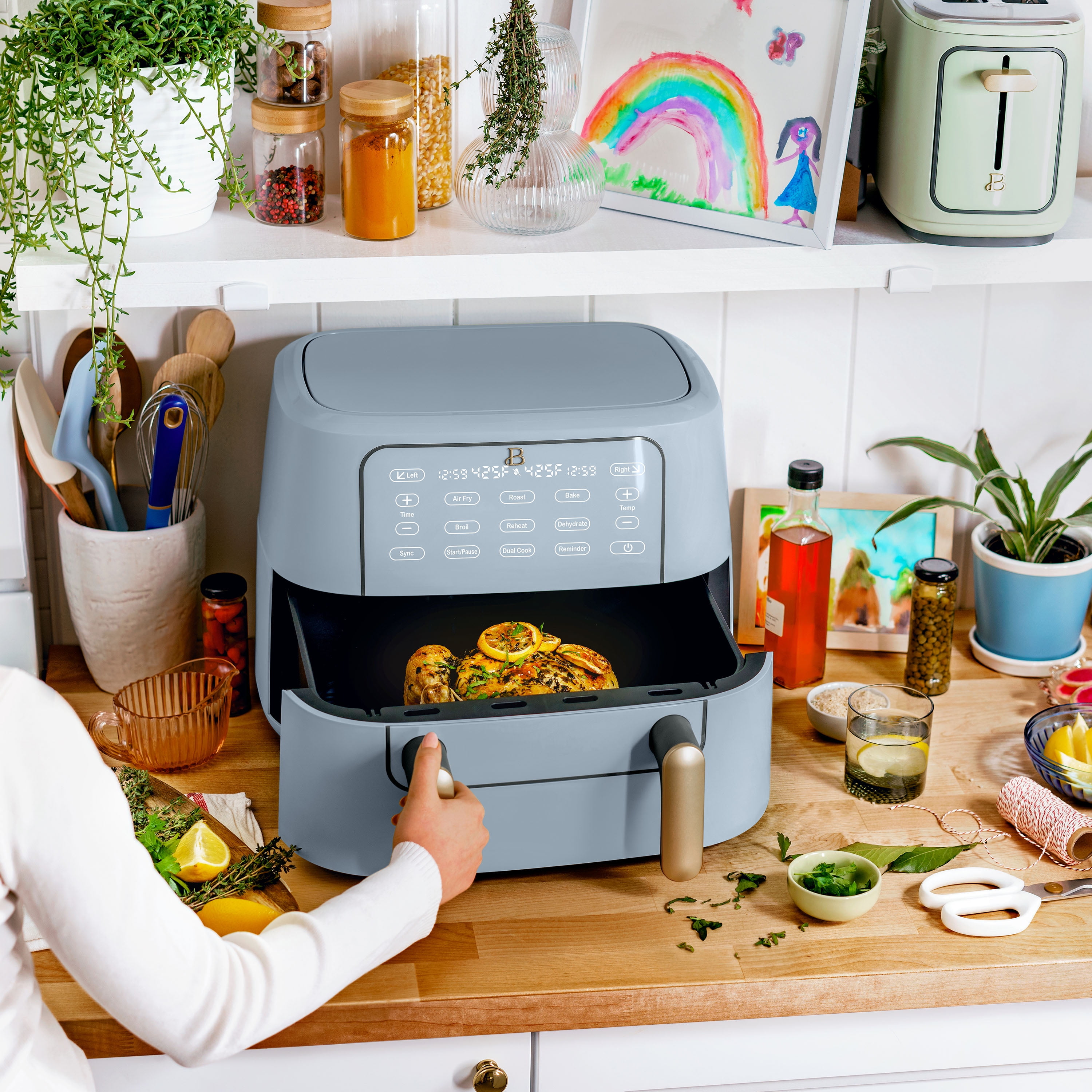 Beautiful 9 QT TriZone Air Fryer, Cornflower Blue by Drew Barrymore