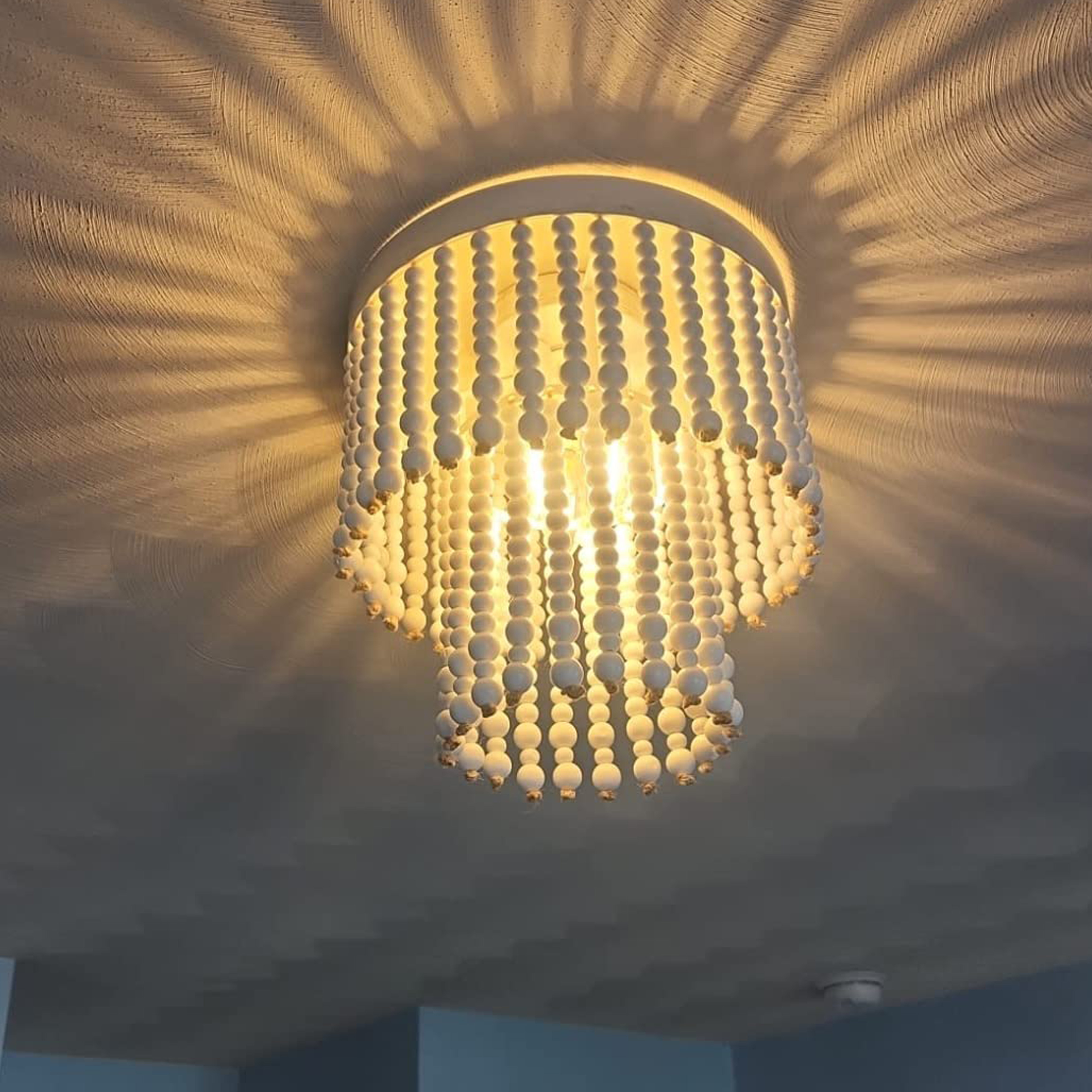 $17.19Express your individuality with wood bead chandelier which has a striking natural beauty look, embraces carefree, creative and carries free-spirited with uncompromising solid wood beads detailing and impressively aesthetic pendant formed by whitewashed wood beads associate with bohemia hemp rope. Boho light fixture with classic bohemian elements generates super homey and welcoming vibes, casts amazing lighting effect on the ceiling, when illuminated. Flush mount ceiling light makes upholstery rich and your guests will feel the bohemian exotic. Wood bead light which is perfect for bedroom, dining room, kitchen island, hallway stairway baby’s nursery etc.