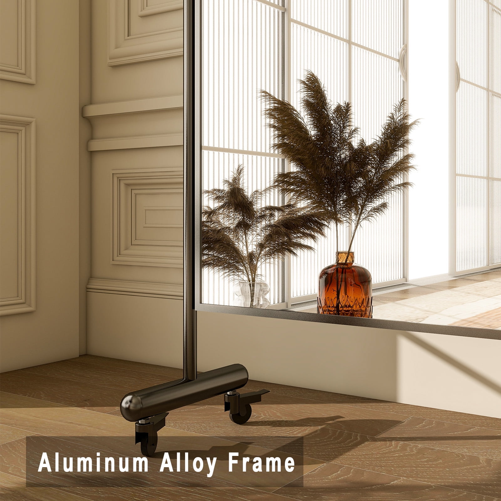$85.14This a movable and tiltable mirror, which can also function as a dance mirror.The mirror is 20.5″x 61.4″ and the whole product is about 22.7″x 67.3″.