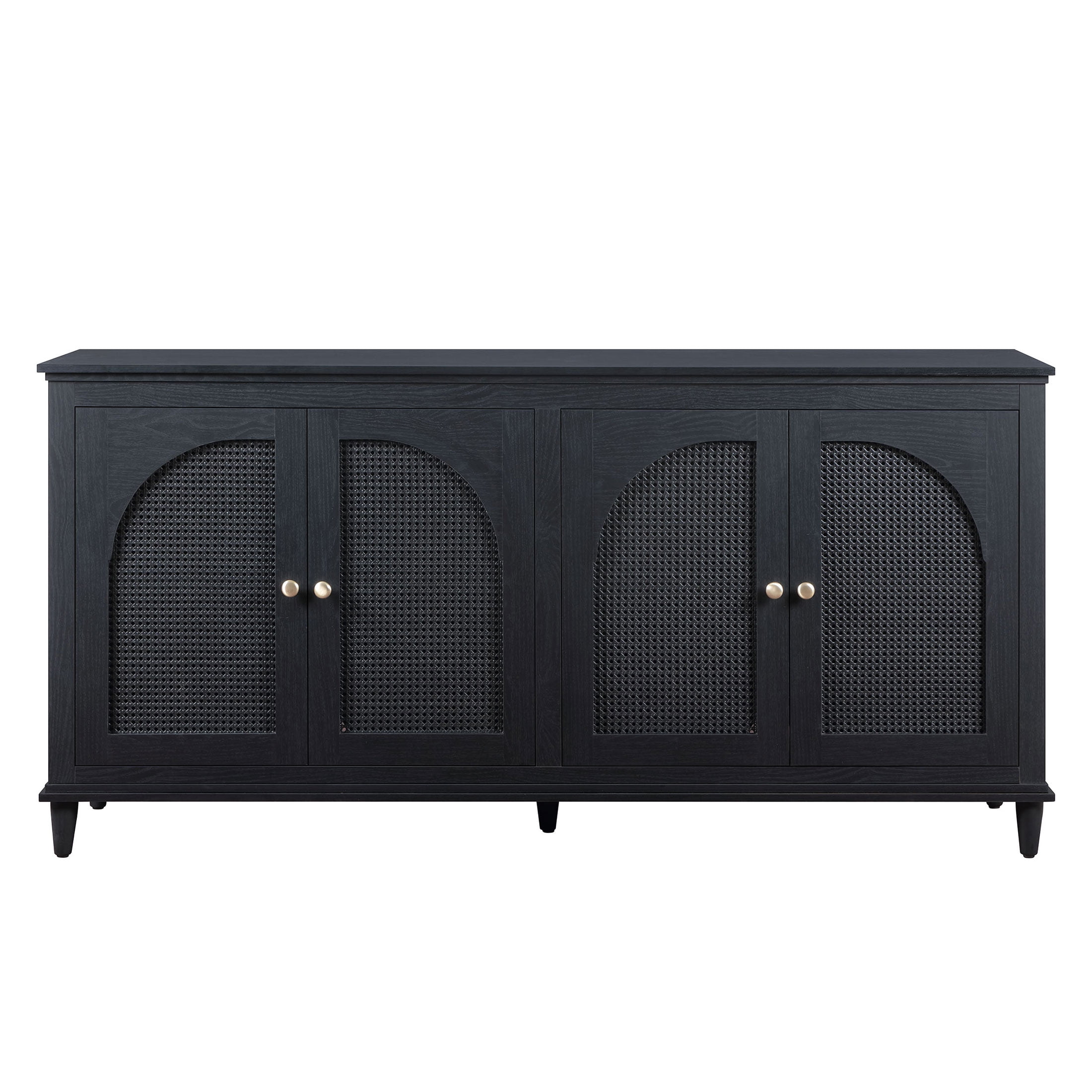 Beautiful Drew Rattan 4-Door Buffet Sideboard by Drew Barrymore, 2 Adjustable Shelves, Black Finish